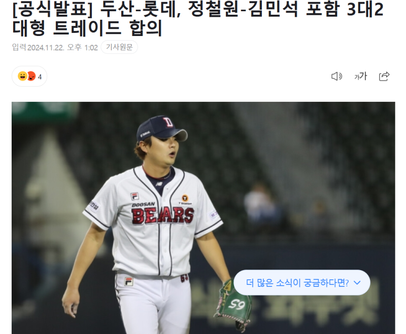 리을님의 댓글의 댓글 리을쪽지보내기 자기소개 닉네임으로 검색쪽지보내기 자기소개 닉네임으로 검색 작성일 2024.11.22 13:07 두산팬인데 제가 싫어했던 두명 다 보내네요 ㄷㄷ 두산팬인데 제가 싫어했던 두명 다 보내네요 ㄷㄷ