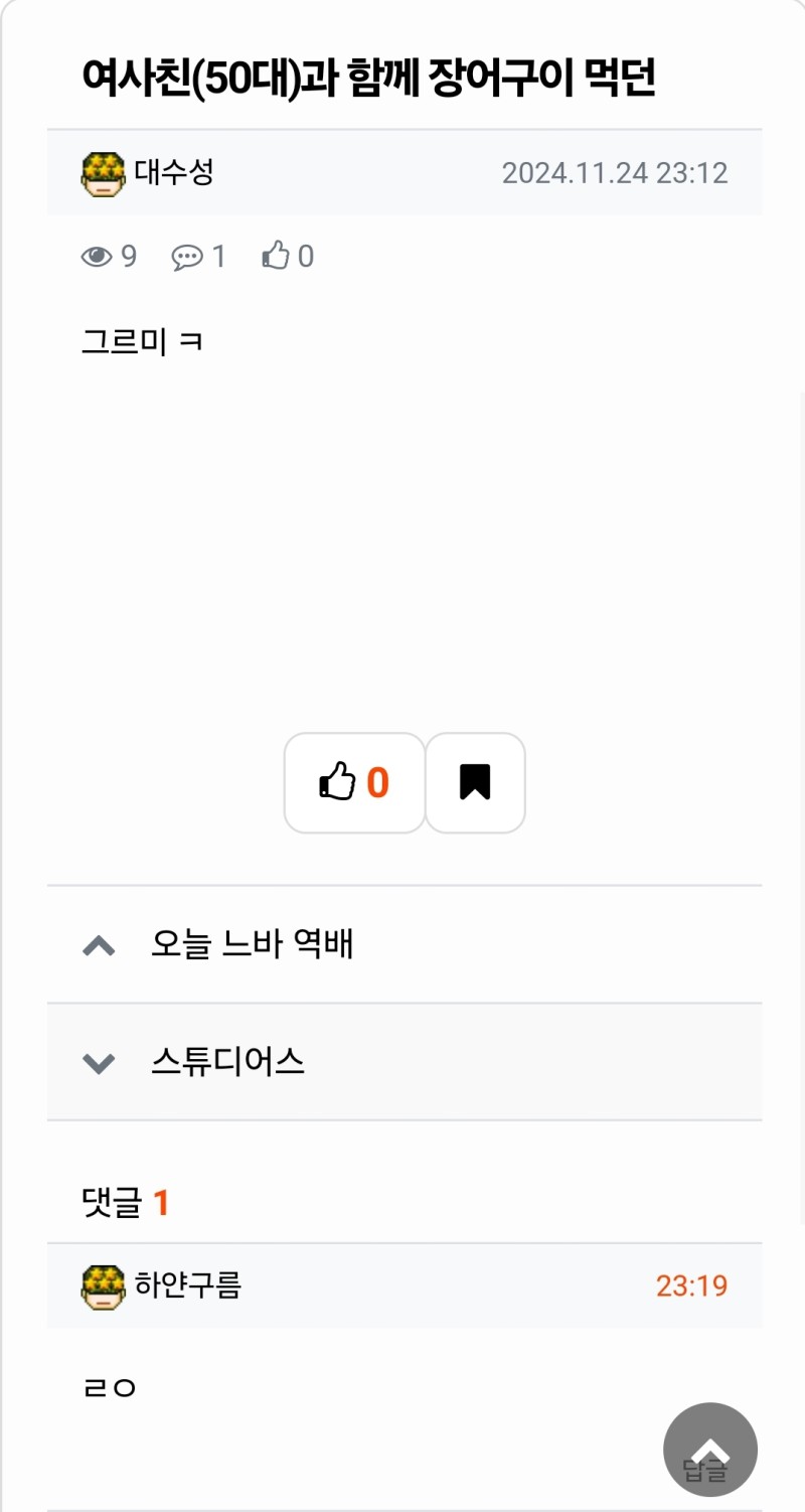 부대차렷 작성자 정보 대수성쪽지보내기 자기소개 닉네임으로 검색쪽지보내기 자기소개 닉네임으로 검색 작성 작성일 2024.11.24 23:21 컨텐츠 정보 120 조회 7 댓글 0 추천 목록 본문 토토도사님께 대하여 받들어총!! 0 추천 관련자료 이전 피오 골이네 작성일 2024.11.24 23:22 다음 할매밥상 벨트평 작성일 2024.11.24 23:21 댓글 7 리을님의 댓글 리을쪽지보내기 자기소개 닉네임으로 검색쪽지보내기 자기소개 닉네임으로 검색 작성일 2024.11.24 23:21 그르미 눈팅중이구나.ㅋ 그르미 눈팅중이구나.ㅋ 마당발님의 댓글 마당발쪽지보내기 자기소개 닉네임으로 검색쪽지보내기 자기소개 닉네임으로 검색 작성일 2024.11.24 23:22 {emo:onion-102.gif:50} 하얀구름님의 댓글 하얀구름쪽지보내기 자기소개 닉네임으로 검색쪽지보내기 자기소개 닉네임으로 검색 작성일 2024.11.24 23:24 쉬어 쉬어 대수성님의 댓글의 댓글 대수성쪽지보내기 자기소개 닉네임으로 검색쪽지보내기 자기소개 닉네임으로 검색 작성일 2024.11.24 23:25 {emo:onion-016.gif:50} 발베르데데님의 댓글 발베르데데쪽지보내기 자기소개 닉네임으로 검색쪽지보내기 자기소개 닉네임으로 검색 작성일 2024.11.24 23:35 50대 ㅋㅋㅋㅋ 50대 ㅋㅋㅋㅋ 돈미새토린이님의 댓글 돈미새토린이쪽지보내기 자기소개 닉네임으로 검색쪽지보내기 자기소개 닉네임으로 검색 작성일 2024.11.25 00:15 ㄹㅇ 50대? ㄹㅇ 50대? 대수성님의 댓글의 댓글 대수성쪽지보내기 자기소개 닉네임으로 검색쪽지보내기 자기소개 닉네임으로 검색 작성일 2024.11.25 09:19 그르미랑 동갑 ㅋ 그르미랑 동갑 ㅋ 로그인한 회원만 댓글 등록이 가능합니다. 목록
