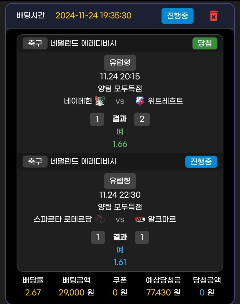 할매밥상 무역배킬러 작성자 정보 무역배킬러쪽지보내기 자기소개 닉네임으로 검색쪽지보내기 자기소개 닉네임으로 검색 작성 작성일 2024.11.24 23:23 컨텐츠 정보 138 조회 5 댓글 0 추천 목록 본문 다른덴 양득가면 양득 순간 처리되는데 메인벳은 양득 적중처리 경기 끝나야 하네 일찍 출근이라 자야해서 미리좀 올립니다 0 추천 관련자료 이전 다들 그르미 출석이벤 기다리는거지 + 작성일 2024.11.24 23:23 다음 그르미 할티오면 본인 닉 부터 검색할듯. 작성일 2024.11.24 23:23 댓글 5 먼짝귀1111님의 댓글 먼짝귀1111쪽지보내기 자기소개 닉네임으로 검색쪽지보내기 자기소개 닉네임으로 검색 작성일 2024.11.24 23:25 뉴욕버거ㅅ굿 뉴욕버거ㅅ굿 켄트퍼플님의 댓글 켄트퍼플쪽지보내기 자기소개 닉네임으로 검색쪽지보내기 자기소개 닉네임으로 검색 작성일 2024.11.24 23:25 축하드립니다 굿밤 축하드립니다 굿밤 발베르데데님의 댓글 발베르데데쪽지보내기 자기소개 닉네임으로 검색쪽지보내기 자기소개 닉네임으로 검색 작성일 2024.11.24 23:33 오우 맛도리 오우 맛도리 기커조님의 댓글 기커조쪽지보내기 자기소개 닉네임으로 검색쪽지보내기 자기소개 닉네임으로 검색 작성일 2024.11.25 01:06 햄버거맛있겠당 햄버거맛있겠당 후지에시호님의 댓글 후지에시호쪽지보내기 자기소개 닉네임으로 검색쪽지보내기 자기소개 닉네임으로 검색 작성일 2024.11.25 01:17 뉴욕버거 맛있나요 뉴욕버거 맛있나요 로그인한 회원만 댓글 등록이 가능합니다. 목록