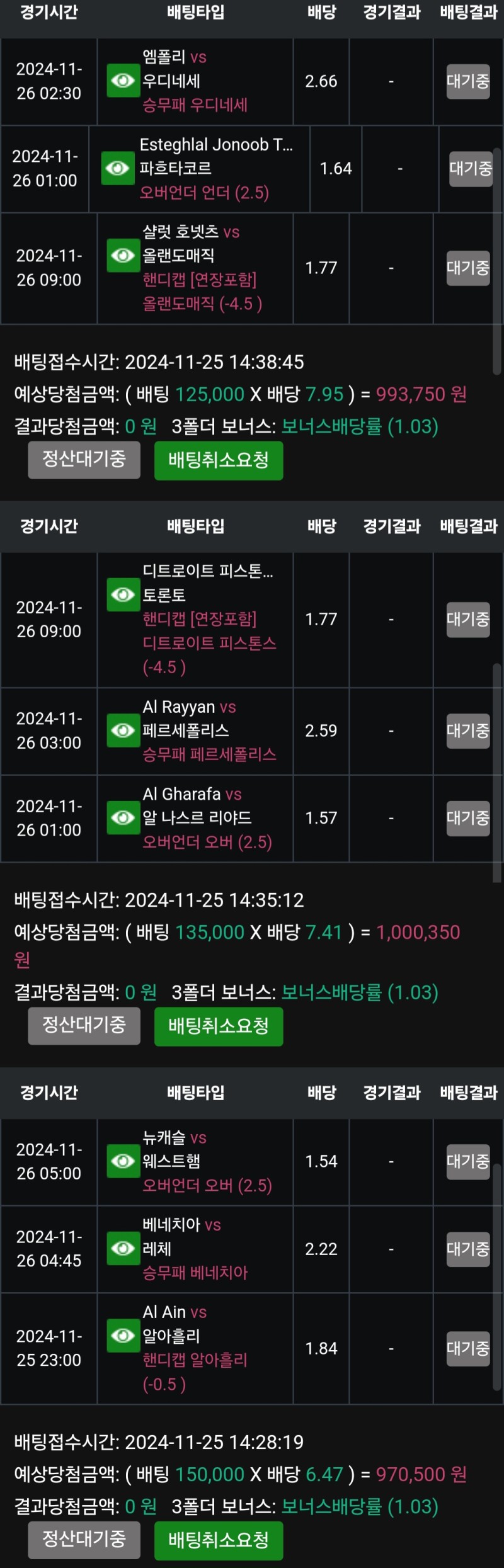 마감시간 첫경기 전인 23:00까지 수정 가능