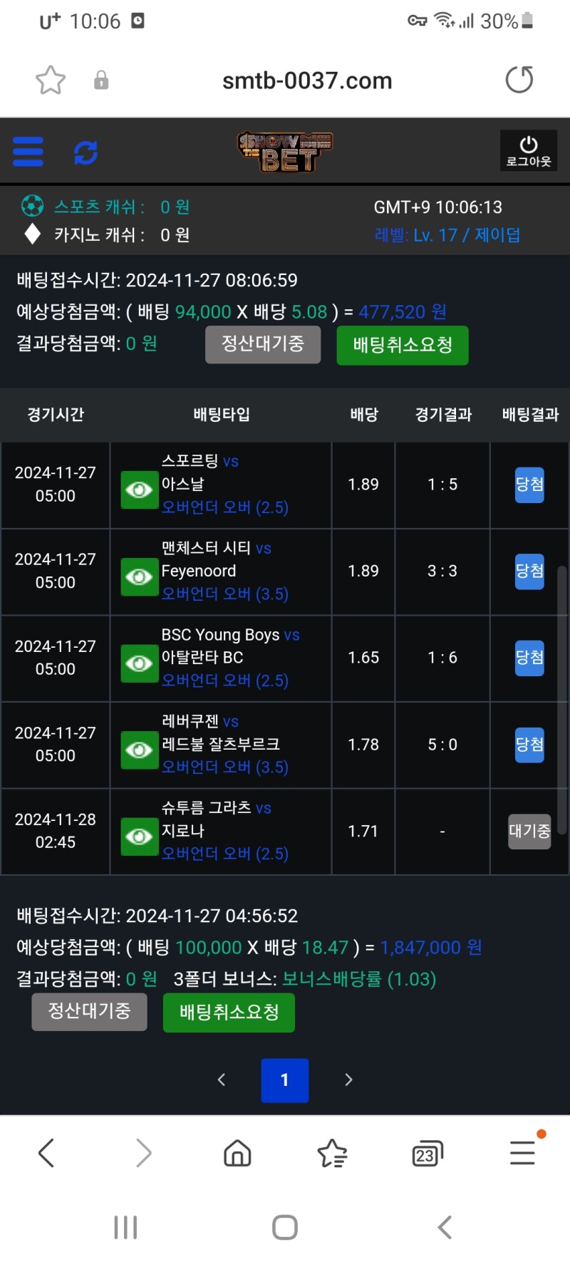 예리예리해님의 댓글 예리예리해쪽지보내기 자기소개 닉네임으로 검색쪽지보내기 자기소개 닉네임으로 검색 작성일 2024.11.27 10:12 2.5언더 10 보험 치고 실시간으로 경기 보면서 조금씩 더 넣을 듯 2.5언더 10 보험 치고 실시간으로 경기 보면서 조금씩 더 넣을 듯