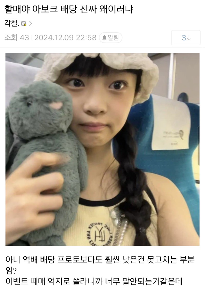 각철님의 댓글의 댓글 각철쪽지보내기 자기소개 닉네임으로 검색쪽지보내기 자기소개 닉네임으로 검색 작성일 2024.12.10 08:45 아침부터 기분나빠요 ㅜㅜ 아침부터 기분나빠요 ㅜㅜ