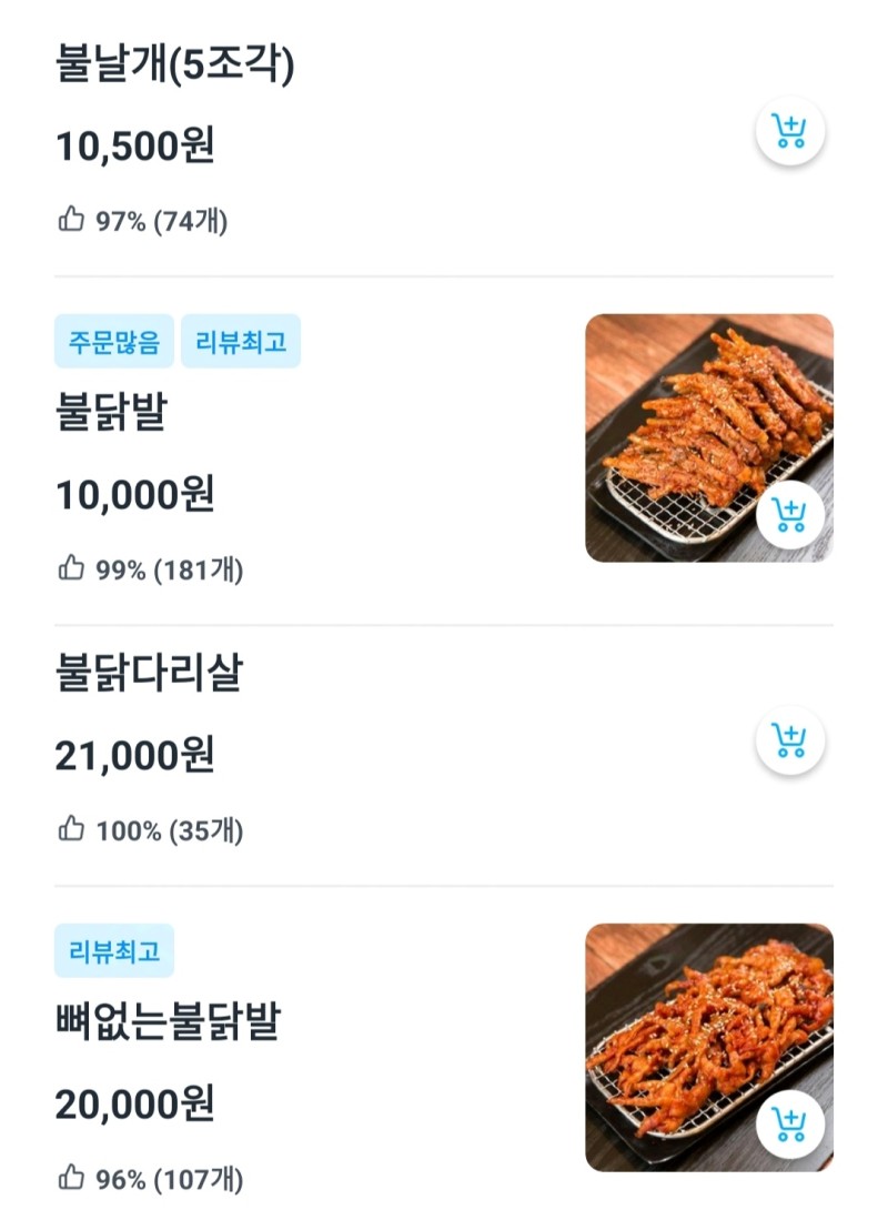 뼈닭발이랑 무뼈닭발 만원차이나는데 뭐지 작성자 정보 마당발쪽지보내기 자기소개 닉네임으로 검색쪽지보내기 자기소개 닉네임으로 검색 작성 작성일 2024.12.12 23:49 컨텐츠 정보 66 조회 4 댓글 0 추천 목록 본문 양은 안써있는데 왤캐 차이나지 만원이면 혜자 아님? 0 추천 관련자료 이전 오늘 저녁 김밥 + 컵라면 먹었는데 작성일 2024.12.12 23:51 다음 첼시 라인업 뭐지. 작성일 2024.12.12 23:46 댓글 4 김배틀님의 댓글 김배틀쪽지보내기 자기소개 닉네임으로 검색쪽지보내기 자기소개 닉네임으로 검색 작성일 2024.12.12 23:49 헐? 양이 다른거 아니면 저럴리가 없을텐데 신기하네요 헐? 양이 다른거 아니면 저럴리가 없을텐데 신기하네요 인생은도박이다님의 댓글 인생은도박이다쪽지보내기 자기소개 닉네임으로 검색쪽지보내기 자기소개 닉네임으로 검색 작성일 2024.12.12 23:50 닭발은 오도독 10는 맛으로 먹는 거 아닌가? 닭발은 오도독 10는 맛으로 먹는 거 아닌가? 달먹님의 댓글 달먹쪽지보내기 자기소개 닉네임으로 검색쪽지보내기 자기소개 닉네임으로 검색 작성일 2024.12.13 03:38 닭발 징그럿 ㅠ 닭발 징그럿 ㅠ 두두님의 댓글 두두쪽지보내기 자기소개 닉네임으로 검색쪽지보내기 자기소개 닉네임으로 검색 작성일 2024.12.13 08:41 개어이 개어이 로그인한 회원만 댓글 등록이 가능합니다. 목록