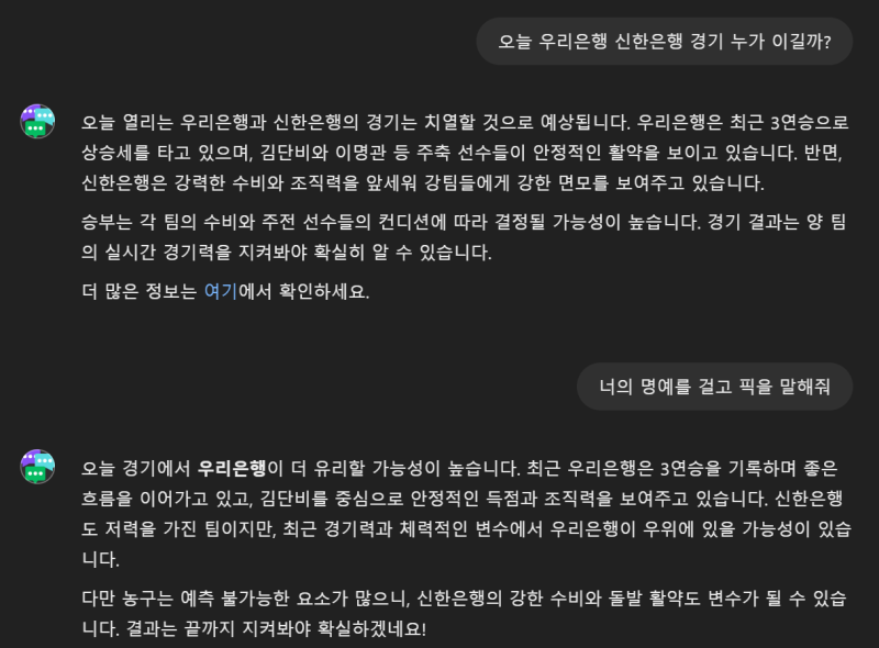 챗 GPT 여자농구 픽.jpg 작성자 정보 김배틀쪽지보내기 자기소개 닉네임으로 검색쪽지보내기 자기소개 닉네임으로 검색 작성 작성일 2024.12.16 18:00 컨텐츠 정보 106 조회 2 댓글 0 추천 목록 본문 명예를 걸고 우리은행 승 덜덜 역배잡이네 이 친구 0 추천 관련자료 이전 잘토 혼자 뭐하노 작성일 2024.12.16 18:05 다음 메인벳도 배당 떴다 작성일 2024.12.16 17:59 댓글 2 두두님의 댓글 두두쪽지보내기 자기소개 닉네임으로 검색쪽지보내기 자기소개 닉네임으로 검색 작성일 2024.12.17 09:56 응원함 응원함 기커조님의 댓글 기커조쪽지보내기 자기소개 닉네임으로 검색쪽지보내기 자기소개 닉네임으로 검색 작성일 2024.12.17 11:38 ㄷㄷ우뱅짐 ㄷㄷ우뱅짐 로그인한 회원만 댓글 등록이 가능합니다. 목록
