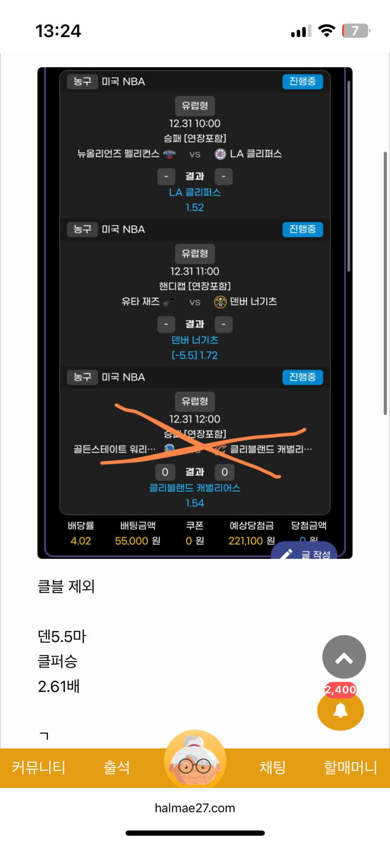1승 성공했는데 뱃도 성공할까여 ㅜ 작성자 정보 각철쪽지보내기 자기소개 닉네임으로 검색쪽지보내기 자기소개 닉네임으로 검색 작성 작성일 2024.12.31 13:25 컨텐츠 정보 127 조회 2 댓글 0 추천 목록 본문 과연? 0 추천 관련자료 이전 골스도 홈에서 작성일 2024.12.31 13:33 다음 골스 클블은 국농인감 작성일 2024.12.31 13:13 댓글 2 두두님의 댓글 두두쪽지보내기 자기소개 닉네임으로 검색쪽지보내기 자기소개 닉네임으로 검색 작성일 2024.12.31 17:24 과연 과연 국밥이님의 댓글 국밥이쪽지보내기 자기소개 닉네임으로 검색쪽지보내기 자기소개 닉네임으로 검색 작성일 2024.12.31 22:22 근데 왜... 근데 왜... 로그인한 회원만 댓글 등록이 가능합니다. 목록