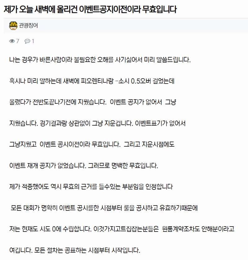 그리고 지운시점에도 이벤트 재개 공지가 없었습니다. 그러므로 명백한 무효입니다.
