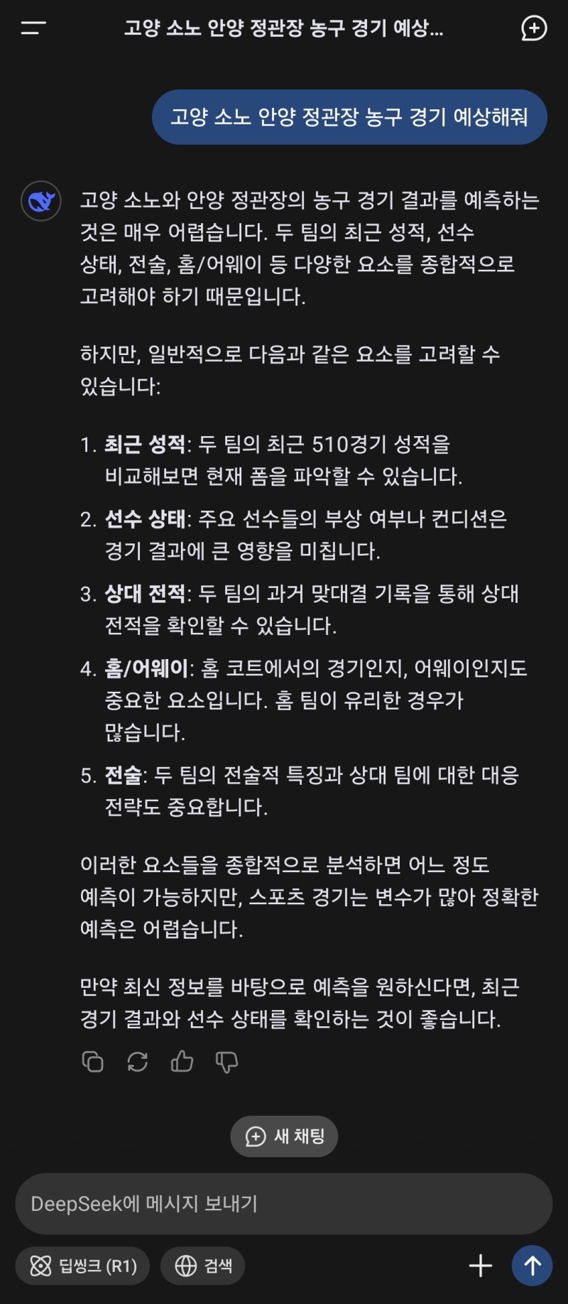 챗gpt 딥시크 작성자 정보 무역배킬러쪽지보내기 자기소개 닉네임으로 검색쪽지보내기 자기소개 닉네임으로 검색 작성 작성일 2025.01.28 11:57 컨텐츠 정보 61 조회 6 댓글 0 추천 목록 본문 차이 0 추천 관련자료 이전 본가와서 작성일 2025.01.28 11:58 다음 오늘하루도 화이팅!! 작성일 2025.01.28 11:44 댓글 6 기커조님의 댓글 기커조쪽지보내기 자기소개 닉네임으로 검색쪽지보내기 자기소개 닉네임으로 검색 작성일 2025.01.28 12:07 오호 오호 켄트퍼플님의 댓글 켄트퍼플쪽지보내기 자기소개 닉네임으로 검색쪽지보내기 자기소개 닉네임으로 검색 작성일 2025.01.28 12:16 오우 오우 인생은도박이다님의 댓글 인생은도박이다쪽지보내기 자기소개 닉네임으로 검색쪽지보내기 자기소개 닉네임으로 검색 작성일 2025.01.28 13:03 이게 짱개 AI구나 이게 짱개 AI구나 두두님의 댓글 두두쪽지보내기 자기소개 닉네임으로 검색쪽지보내기 자기소개 닉네임으로 검색 작성일 2025.01.28 14:46 기괴해 기괴해 달먹님의 댓글 달먹쪽지보내기 자기소개 닉네임으로 검색쪽지보내기 자기소개 닉네임으로 검색 작성일 2025.01.28 18:49 믿어보까 믿어보까 먼짝귀1111님의 댓글 먼짝귀1111쪽지보내기 자기소개 닉네임으로 검색쪽지보내기 자기소개 닉네임으로 검색 작성일 2025.01.28 21:42 오우 이기써봐야 긋넹 오우 이기써봐야 긋넹 로그인한 회원만 댓글 등록이 가능합니다. 목록