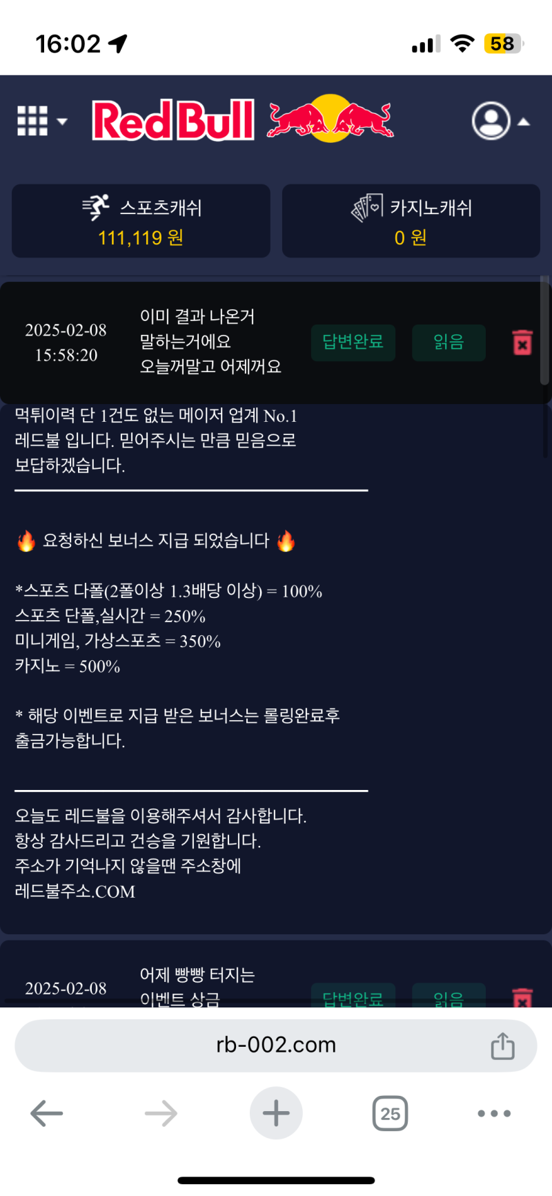 뭐임?? 나 어제 레드불 당첨된거 이제암 작성자 정보 각철쪽지보내기 자기소개 닉네임으로 검색쪽지보내기 자기소개 닉네임으로 검색 작성 작성일 2025.02.08 16:03 컨텐츠 정보 49 조회 6 댓글 0 추천 목록 본문 감사힙니다 11콩 ㅅㅅ 근데ㅜ달라하니까 주네 몰랐으면 넘어갈뻔 미친넘들 0 추천 관련자료 이전 좌원희 혼자 다하네 작성일 2025.02.08 16:04 다음 스크 결국 이기는 거냐? 작성일 2025.02.08 16:02 댓글 6 인생은도박이다님의 댓글 인생은도박이다쪽지보내기 자기소개 닉네임으로 검색쪽지보내기 자기소개 닉네임으로 검색 작성일 2025.02.08 16:08 원래 그렇지... 모르는 놈들한테는 얘기 안 해주고... 시끄러운 놈들한테는 챙겨주고... 캬악 퉷!!!!!!!!!!!!! 원래 그렇지... 모르는 놈들한테는 얘기 안 해주고... 시끄러운 놈들한테는 챙겨주고... 캬악 퉷!!!!!!!!!!!!! 스테판커쇼님의 댓글 스테판커쇼쪽지보내기 자기소개 닉네임으로 검색쪽지보내기 자기소개 닉네임으로 검색 작성일 2025.02.08 16:10 축하해요 축하해요 먼짝귀1111님의 댓글 먼짝귀1111쪽지보내기 자기소개 닉네임으로 검색쪽지보내기 자기소개 닉네임으로 검색 작성일 2025.02.08 16:19 나이타ㅅ 나이타ㅅ 기커조님의 댓글 기커조쪽지보내기 자기소개 닉네임으로 검색쪽지보내기 자기소개 닉네임으로 검색 작성일 2025.02.08 16:47 축하합니다 축하합니다 두두님의 댓글 두두쪽지보내기 자기소개 닉네임으로 검색쪽지보내기 자기소개 닉네임으로 검색 작성일 2025.02.08 17:26 부럽네 부럽네 달먹님의 댓글 달먹쪽지보내기 자기소개 닉네임으로 검색쪽지보내기 자기소개 닉네임으로 검색 작성일 2025.02.08 22:22 축하해 축하해 로그인한 회원만 댓글 등록이 가능합니다. 목록