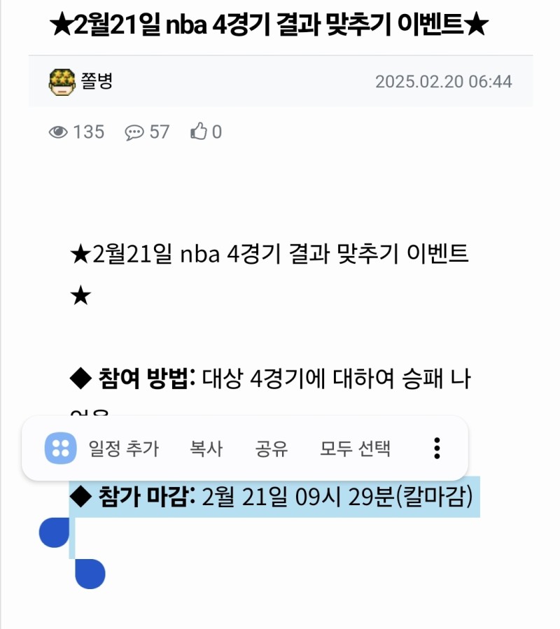 쫄병님의 댓글 쫄병쪽지보내기 자기소개 닉네임으로 검색쪽지보내기 자기소개 닉네임으로 검색 작성일 2025.02.21 09:23 네 가능 마감실수시간잘못봄요 네 가능 마감실수시간잘못봄요