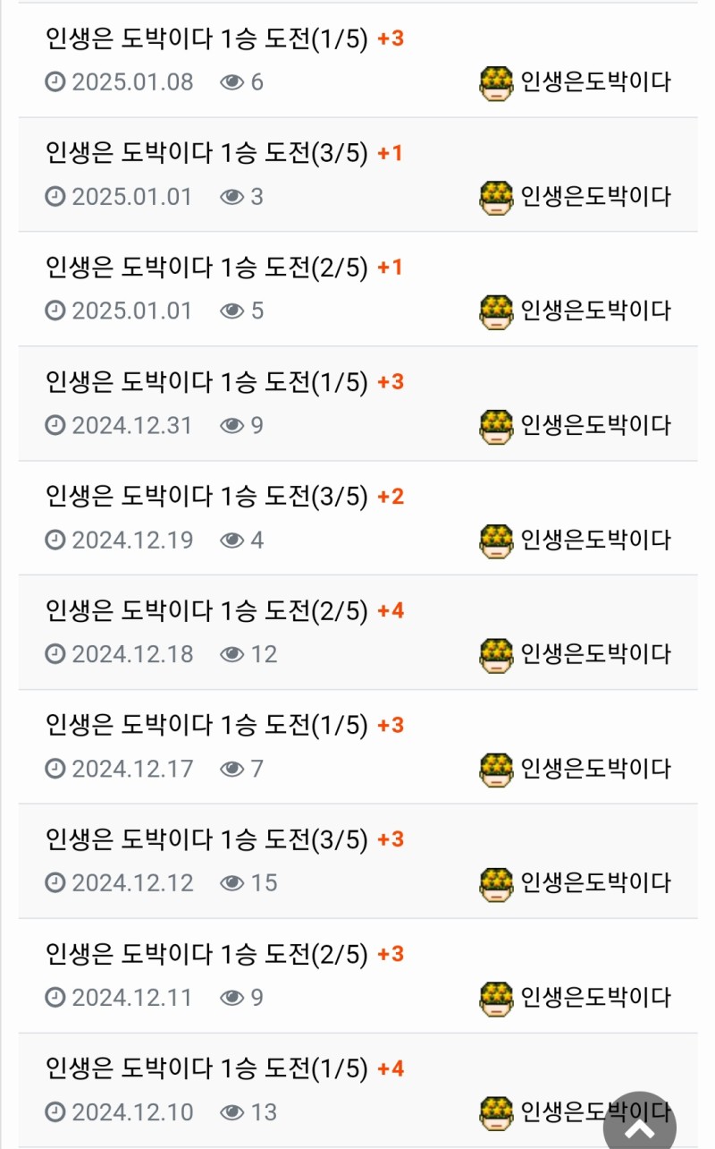 안 될 땐 진짜 뭘 해도 안 되더라 작성자 정보 인생은도박이다쪽지보내기 자기소개 닉네임으로 검색쪽지보내기 자기소개 닉네임으로 검색 작성 작성일 2025.02.26 08:37 컨텐츠 정보 37 조회 8 댓글 0 추천 목록 본문 그건 마치 늪에 빠져 허우적 대는 것과 같다. 몸부림 칠 수록 더 깊은 수렁으로 빠진다. 그러나, 중요한 것은 결코 죽지 않는다는 점이다. 할 수 있다. 빠져 나올 수 있다. 0 추천 관련자료 이전 날씨가 풀렸다더라 작성일 2025.02.26 08:38 다음 베팅은 기세 작성일 2025.02.26 08:30 댓글 8 마당발님의 댓글 마당발쪽지보내기 자기소개 닉네임으로 검색쪽지보내기 자기소개 닉네임으로 검색 작성일 2025.02.26 08:45 사람이가 사람이가 인생은도박이다님의 댓글의 댓글 인생은도박이다쪽지보내기 자기소개 닉네임으로 검색쪽지보내기 자기소개 닉네임으로 검색 작성일 2025.02.26 08:49 당발이 10연패 샤샤샷 당발이 10연패 샤샤샷 먼짝귀1111님의 댓글 먼짝귀1111쪽지보내기 자기소개 닉네임으로 검색쪽지보내기 자기소개 닉네임으로 검색 작성일 2025.02.26 09:07 파도가 쳐야 더 크게 가는법 파도가 쳐야 더 크게 가는법 기커조님의 댓글 기커조쪽지보내기 자기소개 닉네임으로 검색쪽지보내기 자기소개 닉네임으로 검색 작성일 2025.02.26 10:34 힘냅시다 힘냅시다 달먹님의 댓글 달먹쪽지보내기 자기소개 닉네임으로 검색쪽지보내기 자기소개 닉네임으로 검색 작성일 2025.02.26 12:18 이건 저주야! 이건 저주야! 스테판커쇼님의 댓글 스테판커쇼쪽지보내기 자기소개 닉네임으로 검색쪽지보내기 자기소개 닉네임으로 검색 작성일 2025.02.26 15:48 화이팅 화이팅 켄트퍼플님의 댓글 켄트퍼플쪽지보내기 자기소개 닉네임으로 검색쪽지보내기 자기소개 닉네임으로 검색 작성일 2025.02.26 18:37 그렇군요 그렇군요 두두님의 댓글 두두쪽지보내기 자기소개 닉네임으로 검색쪽지보내기 자기소개 닉네임으로 검색 작성일 2025.02.26 21:35 기세 ㄷ 기세 ㄷ 로그인한 회원만 댓글 등록이 가능합니다. 목록