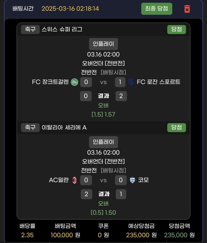 분노벳 성공 작성자 정보 안걸림쪽지보내기 자기소개 닉네임으로 검색쪽지보내기 자기소개 닉네임으로 검색 작성 작성일 2025.03.16 05:09 컨텐츠 정보 79 조회 8 댓글 0 추천 목록 본문 참 웃긴게 포르투 실시간 옵 갈려고 충전한 사이에 경기 없어져서 호벤경기 전반옵 갔는데 오히려 좋았네 포르투는 결국 언더 났고 0 추천 관련자료 이전 레알이 레알꿀배당 ㅜㅜ 작성일 2025.03.16 05:31 다음 마인츠 ㅅㅂ 울버나갈ㅋ걸 작성일 2025.03.16 04:00 댓글 8 쫄병님의 댓글 쫄병쪽지보내기 자기소개 닉네임으로 검색쪽지보내기 자기소개 닉네임으로 검색 작성일 2025.03.16 05:23 ㄷㄷ ㄷㄷ 두두님의 댓글 두두쪽지보내기 자기소개 닉네임으로 검색쪽지보내기 자기소개 닉네임으로 검색 작성일 2025.03.16 07:08 성공 ㅅ 성공 ㅅ 인생은도박이다님의 댓글 인생은도박이다쪽지보내기 자기소개 닉네임으로 검색쪽지보내기 자기소개 닉네임으로 검색 작성일 2025.03.16 09:58 굿럭 굿럭 기커조님의 댓글 기커조쪽지보내기 자기소개 닉네임으로 검색쪽지보내기 자기소개 닉네임으로 검색 작성일 2025.03.16 13:18 축하요 축하요 먼짝귀1111님의 댓글 먼짝귀1111쪽지보내기 자기소개 닉네임으로 검색쪽지보내기 자기소개 닉네임으로 검색 작성일 2025.03.16 14:11 화이팅 화이팅 켄트퍼플님의 댓글 켄트퍼플쪽지보내기 자기소개 닉네임으로 검색쪽지보내기 자기소개 닉네임으로 검색 작성일 2025.03.16 18:53 굿굿 굿굿 마당발님의 댓글 마당발쪽지보내기 자기소개 닉네임으로 검색쪽지보내기 자기소개 닉네임으로 검색 작성일 2025.03.16 21:12 ㅊㅋㅊㅋ ㅊㅋㅊㅋ 스테판커쇼님의 댓글 스테판커쇼쪽지보내기 자기소개 닉네임으로 검색쪽지보내기 자기소개 닉네임으로 검색 작성일 2025.03.16 21:36 축하드려요 축하드려요 로그인한 회원만 댓글 등록이 가능합니다. 목록