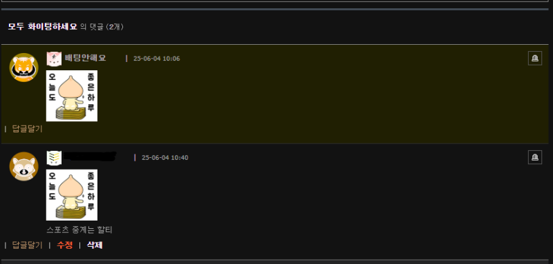 홍보왕 은하단 작성자 정보 은하단쪽지보내기 자기소개 닉네임으로 검색쪽지보내기 자기소개 닉네임으로 검색 작성 작성일 2025.06.04 10:44 컨텐츠 정보 70 조회 7 댓글 0 추천 목록 본문 디시 네이버 pc라스 스포츠 중계는 할매티비 0 추천 관련자료 이전 보스턴 18출루 3득하고 처졌네 작성일 2025.06.04 11:20 다음 티보듀에서 말론으로 작성일 2025.06.04 10:40 댓글 7 인생은도박이다님의 댓글 인생은도박이다쪽지보내기 자기소개 닉네임으로 검색쪽지보내기 자기소개 닉네임으로 검색 작성일 2025.06.04 11:29 으이! 으이! 기커조님의 댓글 기커조쪽지보내기 자기소개 닉네임으로 검색쪽지보내기 자기소개 닉네임으로 검색 작성일 2025.06.04 11:40 홍보 ㅅ 홍보 ㅅ 켄트퍼플님의 댓글 켄트퍼플쪽지보내기 자기소개 닉네임으로 검색쪽지보내기 자기소개 닉네임으로 검색 작성일 2025.06.04 11:44 좋아요 좋아요 두두님의 댓글 두두쪽지보내기 자기소개 닉네임으로 검색쪽지보내기 자기소개 닉네임으로 검색 작성일 2025.06.04 22:25 으나 ㄷ 으나 ㄷ 마당발님의 댓글 마당발쪽지보내기 자기소개 닉네임으로 검색쪽지보내기 자기소개 닉네임으로 검색 작성일 2025.06.04 22:39 굿 굿 먼짝귀1111님의 댓글 먼짝귀1111쪽지보내기 자기소개 닉네임으로 검색쪽지보내기 자기소개 닉네임으로 검색 작성일 2025.06.05 00:55 굿ㅅ 굿ㅅ 달먹님의 댓글 달먹쪽지보내기 자기소개 닉네임으로 검색쪽지보내기 자기소개 닉네임으로 검색 작성일 2025.06.05 14:01 홍하단 ㅅㅅ 홍하단 ㅅㅅ 로그인한 회원만 댓글 등록이 가능합니다. 목록