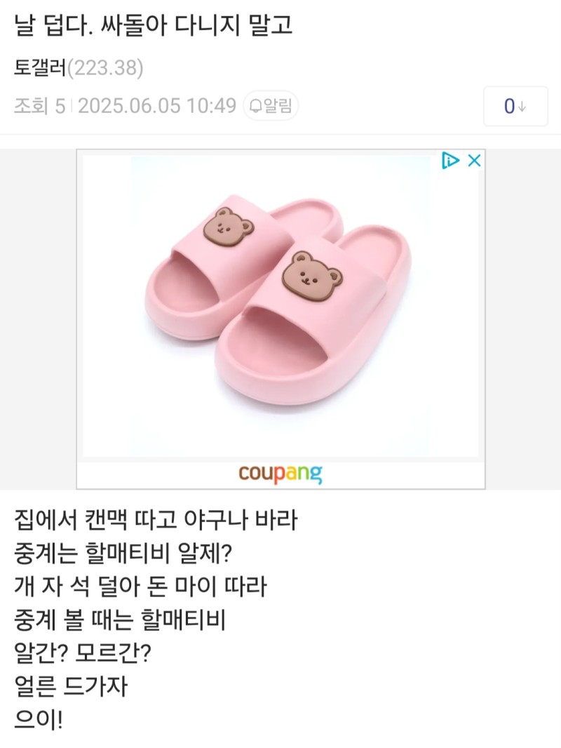 홍보왕 인생은 도박이다 작성자 정보 인생은도박이다쪽지보내기 자기소개 닉네임으로 검색쪽지보내기 자기소개 닉네임으로 검색 작성 작성일 2025.06.05 12:10 컨텐츠 정보 44 조회 4 댓글 0 추천 목록 본문 으이! 0 추천 관련자료 이전 졸라 덥구로 작성일 2025.06.05 12:11 다음 해리스는 진짜 개ㅂㅅ이네 ㅋㅋㅋㅋ 작성일 2025.06.05 12:10 댓글 4 기커조님의 댓글 기커조쪽지보내기 자기소개 닉네임으로 검색쪽지보내기 자기소개 닉네임으로 검색 작성일 2025.06.05 12:17 홍보 ㅅ 홍보 ㅅ 마당발님의 댓글 마당발쪽지보내기 자기소개 닉네임으로 검색쪽지보내기 자기소개 닉네임으로 검색 작성일 2025.06.05 12:31 굿 굿 스테판커쇼님의 댓글 스테판커쇼쪽지보내기 자기소개 닉네임으로 검색쪽지보내기 자기소개 닉네임으로 검색 작성일 2025.06.05 21:47 화이팅 화이팅 두두님의 댓글 두두쪽지보내기 자기소개 닉네임으로 검색쪽지보내기 자기소개 닉네임으로 검색 작성일 2025.06.06 09:15 홍도 홍도 로그인한 회원만 댓글 등록이 가능합니다. 목록