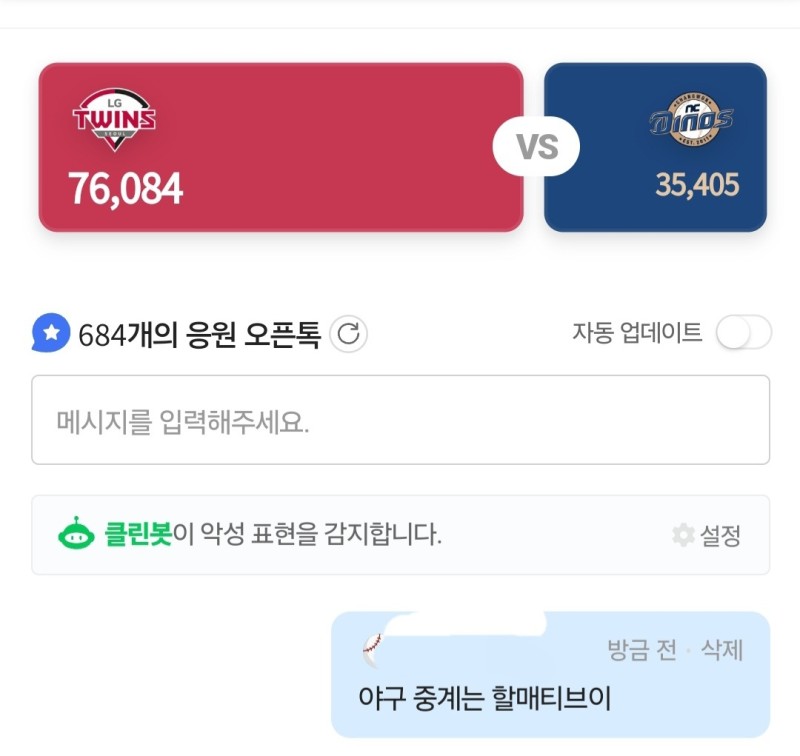 홍보왕 스테판커쇼 작성자 정보 스테판커쇼쪽지보내기 자기소개 닉네임으로 검색쪽지보내기 자기소개 닉네임으로 검색 작성 작성일 2025.06.05 17:21 컨텐츠 정보 51 조회 3 댓글 0 추천 목록 관리 글검색 본문 토갤 네이버 0 추천 관련자료 이전 두산 홈웃 레전드사건 ㄷㄷ 작성일 2025.06.05 21:25 다음 이재명 효과 ㄷㄷ 작성일 2025.06.03 15:44 댓글 3 기커조님의 댓글 기커조쪽지보내기 자기소개 닉네임으로 검색쪽지보내기 자기소개 닉네임으로 검색 작성일 2025.06.05 18:41 홍보 ㅅ 홍보 ㅅ 마당발님의 댓글 마당발쪽지보내기 자기소개 닉네임으로 검색쪽지보내기 자기소개 닉네임으로 검색 작성일 2025.06.05 22:00 캬 캬 두두님의 댓글 두두쪽지보내기 자기소개 닉네임으로 검색쪽지보내기 자기소개 닉네임으로 검색 작성일 2025.06.06 10:51 커쇼 커쇼 로그인한 회원만 댓글 등록이 가능합니다. 목록 관리 글검색