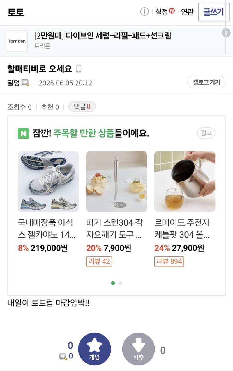 홍보왕 달먹 작성자 정보 달먹쪽지보내기 자기소개 닉네임으로 검색쪽지보내기 자기소개 닉네임으로 검색 작성 작성일 2025.06.05 20:16 컨텐츠 정보 51 조회 4 댓글 0 추천 목록 관리 글검색 본문 토갤 다음 네이버 0 추천 관련자료 이전 달먹 할매밥상 작성일 2025.06.05 20:17 다음 꼴데 하락의 이유 작성일 2025.06.05 12:21 댓글 4 기커조님의 댓글 기커조쪽지보내기 자기소개 닉네임으로 검색쪽지보내기 자기소개 닉네임으로 검색 작성일 2025.06.05 21:02 홍보 ㅅ 홍보 ㅅ 마당발님의 댓글 마당발쪽지보내기 자기소개 닉네임으로 검색쪽지보내기 자기소개 닉네임으로 검색 작성일 2025.06.05 22:17 굿 굿 스테판커쇼님의 댓글 스테판커쇼쪽지보내기 자기소개 닉네임으로 검색쪽지보내기 자기소개 닉네임으로 검색 작성일 2025.06.05 22:48 화이팅 화이팅 두두님의 댓글 두두쪽지보내기 자기소개 닉네임으로 검색쪽지보내기 자기소개 닉네임으로 검색 작성일 2025.06.06 11:47 홍달 홍달 로그인한 회원만 댓글 등록이 가능합니다. 목록 관리 글검색