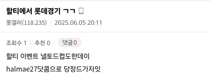 홍보왕 독사 작성자 정보 독사쪽지보내기 자기소개 닉네임으로 검색쪽지보내기 자기소개 닉네임으로 검색 작성 작성일 2025.06.05 20:18 컨텐츠 정보 52 조회 4 댓글 0 추천 목록 관리 글검색 본문 롯데자이안쓰갤 네이버 라쓰 0 추천 관련자료 이전 9대0에서 9대3 ㅋㅋㅋㅋ 작성일 2025.06.05 20:19 다음 애런독지 작성일 2025.06.05 20:10 댓글 4 기커조님의 댓글 기커조쪽지보내기 자기소개 닉네임으로 검색쪽지보내기 자기소개 닉네임으로 검색 작성일 2025.06.05 21:06 홍보 ㅅ 홍보 ㅅ 마당발님의 댓글 마당발쪽지보내기 자기소개 닉네임으로 검색쪽지보내기 자기소개 닉네임으로 검색 작성일 2025.06.05 22:18 굿 굿 스테판커쇼님의 댓글 스테판커쇼쪽지보내기 자기소개 닉네임으로 검색쪽지보내기 자기소개 닉네임으로 검색 작성일 2025.06.05 22:48 홍보 홍보 두두님의 댓글 두두쪽지보내기 자기소개 닉네임으로 검색쪽지보내기 자기소개 닉네임으로 검색 작성일 2025.06.06 11:56 홍독 홍독 로그인한 회원만 댓글 등록이 가능합니다. 목록 관리 글검색
