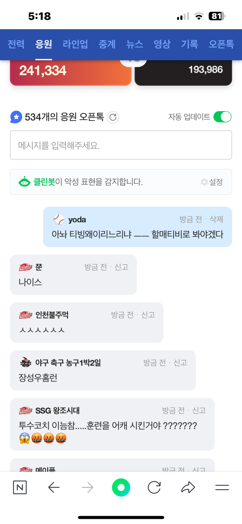 홍보왕 국밥이 작성자 정보 국밥이쪽지보내기 자기소개 닉네임으로 검색쪽지보내기 자기소개 닉네임으로 검색 작성 작성일 2025.06.06 17:21 컨텐츠 정보 59 조회 6 댓글 0 추천 목록 관리 글검색 본문 굿 0 추천 관련자료 이전 뭐야 2분지났는데 아무도 출석을 안하네 작성일 2025.06.07 00:02 다음 진짜 씈 오랜만에 직관이라 베팅좀했는데 작성일 2025.06.06 00:02 댓글 6 두두님의 댓글 두두쪽지보내기 자기소개 닉네임으로 검색쪽지보내기 자기소개 닉네임으로 검색 작성일 2025.06.06 21:20 국빱 국빱 독사님의 댓글 독사쪽지보내기 자기소개 닉네임으로 검색쪽지보내기 자기소개 닉네임으로 검색 작성일 2025.06.07 00:52 굳굿굳 굳굿굳 기커조님의 댓글 기커조쪽지보내기 자기소개 닉네임으로 검색쪽지보내기 자기소개 닉네임으로 검색 작성일 2025.06.07 12:45 홍보 ㅅ 홍보 ㅅ 마당발님의 댓글 마당발쪽지보내기 자기소개 닉네임으로 검색쪽지보내기 자기소개 닉네임으로 검색 작성일 2025.06.07 15:31 굿 굿 켄트퍼플님의 댓글 켄트퍼플쪽지보내기 자기소개 닉네임으로 검색쪽지보내기 자기소개 닉네임으로 검색 작성일 2025.06.07 16:15 좋아요 좋아요 먼짝귀1111님의 댓글 먼짝귀1111쪽지보내기 자기소개 닉네임으로 검색쪽지보내기 자기소개 닉네임으로 검색 작성일 2025.06.07 16:47 굿ㅅ 굿ㅅ 로그인한 회원만 댓글 등록이 가능합니다. 목록 관리 글검색