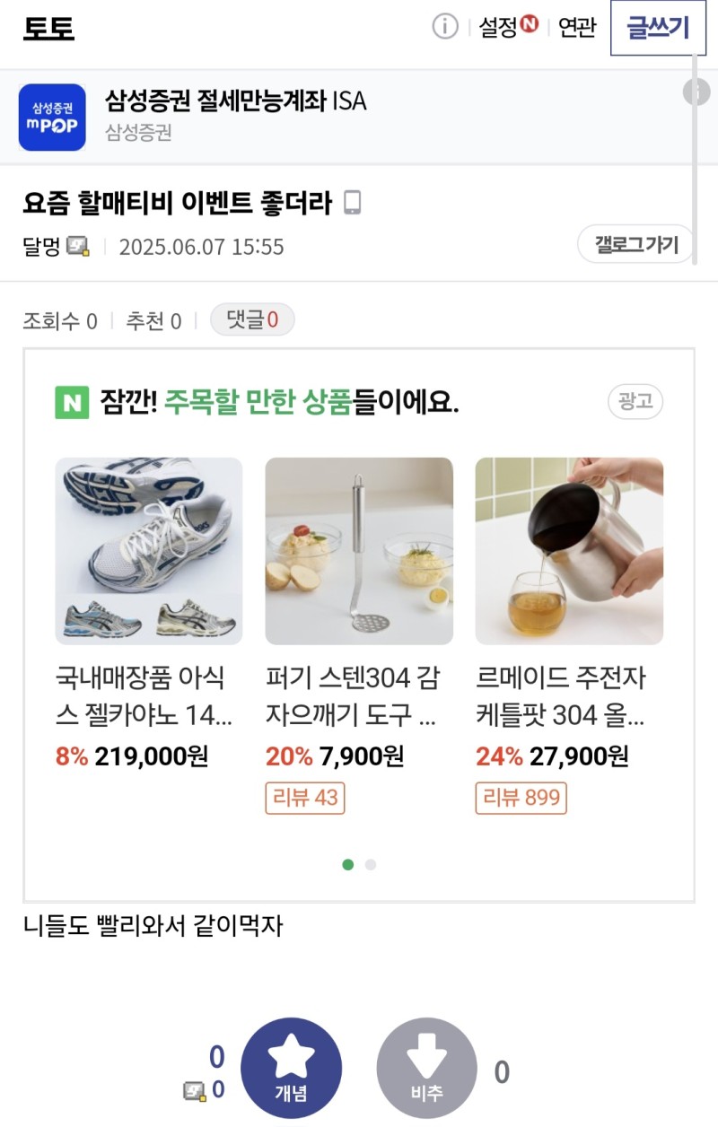 홍보왕 달먹 작성자 정보 달먹쪽지보내기 자기소개 닉네임으로 검색쪽지보내기 자기소개 닉네임으로 검색 작성 작성일 2025.06.07 15:58 컨텐츠 정보 63 조회 7 댓글 0 추천 목록 관리 글검색 본문 다음 네이버 토갤 0 추천 관련자료 이전 메돌은 떴는데 멤돌도 떠야겠지? 작성일 2025.06.07 15:59 다음 쇼페이커네 ㅋㅋㅋ 작성일 2025.06.07 15:54 댓글 7 두두님의 댓글 두두쪽지보내기 자기소개 닉네임으로 검색쪽지보내기 자기소개 닉네임으로 검색 작성일 2025.06.07 19:12 홍달 홍달 마당발님의 댓글 마당발쪽지보내기 자기소개 닉네임으로 검색쪽지보내기 자기소개 닉네임으로 검색 작성일 2025.06.07 20:50 굿 굿 독사님의 댓글 독사쪽지보내기 자기소개 닉네임으로 검색쪽지보내기 자기소개 닉네임으로 검색 작성일 2025.06.07 23:35 토갤 토갤 기커조님의 댓글 기커조쪽지보내기 자기소개 닉네임으로 검색쪽지보내기 자기소개 닉네임으로 검색 작성일 2025.06.08 01:46 홍보 ㅅ 홍보 ㅅ 먼짝귀1111님의 댓글 먼짝귀1111쪽지보내기 자기소개 닉네임으로 검색쪽지보내기 자기소개 닉네임으로 검색 작성일 2025.06.08 14:12 굿ㅅ 굿ㅅ 뜌류님의 댓글 뜌류쪽지보내기 자기소개 닉네임으로 검색쪽지보내기 자기소개 닉네임으로 검색 작성일 2025.06.08 14:51 홍보왕 ㅅㅅ 홍보왕 ㅅㅅ 토지노프2님의 댓글 토지노프2쪽지보내기 자기소개 닉네임으로 검색쪽지보내기 자기소개 닉네임으로 검색 작성일 2025.06.08 15:32 굿ㅅ 굿ㅅ 로그인한 회원만 댓글 등록이 가능합니다. 목록 관리 글검색