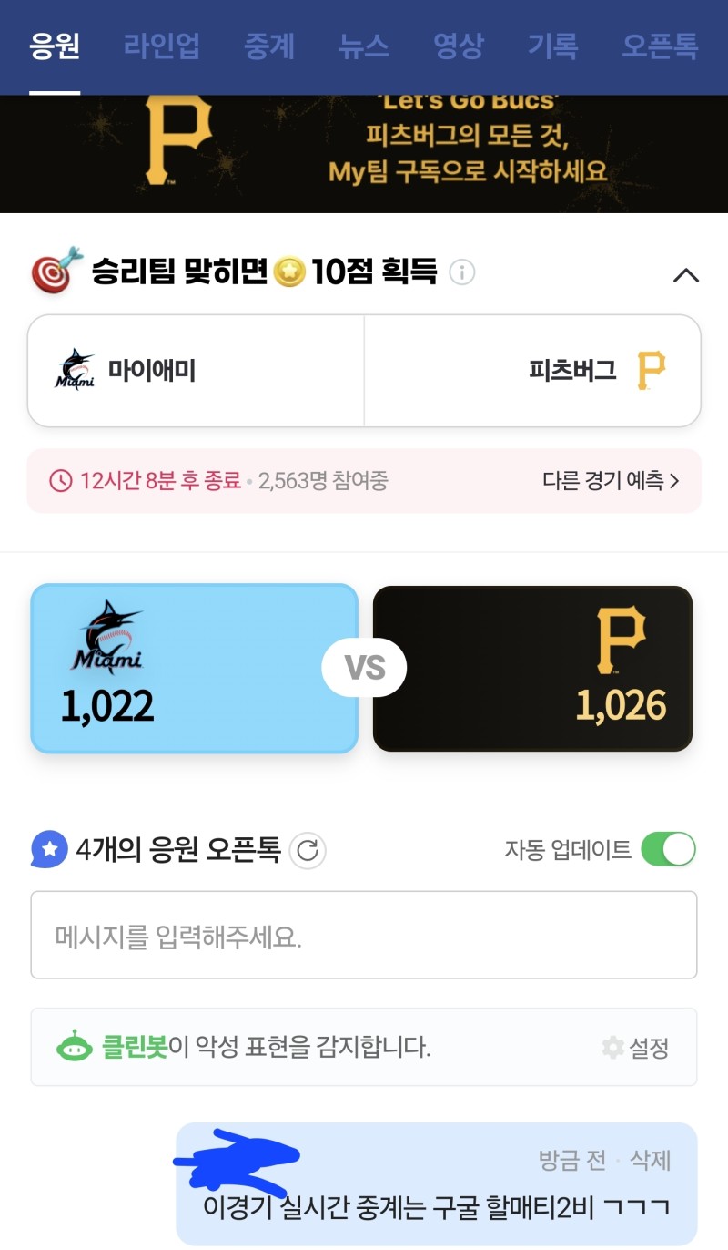 홍보왕 쫄병 작성자 정보 쫄병쪽지보내기 자기소개 닉네임으로 검색쪽지보내기 자기소개 닉네임으로 검색 작성 작성일 2025.06.09 19:31 컨텐츠 정보 62 조회 5 댓글 0 추천 목록 관리 글검색 본문 ㄱㄱㄱㄱ 0 추천 관련자료 이전 장어쥬문완 작성일 2025.06.09 20:29 다음 출근 1시간전 ㅡㅡ 작성일 2025.06.09 18:48 댓글 5 스테판커쇼님의 댓글 스테판커쇼쪽지보내기 자기소개 닉네임으로 검색쪽지보내기 자기소개 닉네임으로 검색 작성일 2025.06.09 20:21 화이팅 화이팅 켄트퍼플님의 댓글 켄트퍼플쪽지보내기 자기소개 닉네임으로 검색쪽지보내기 자기소개 닉네임으로 검색 작성일 2025.06.10 13:42 굿굿 굿굿 마당발님의 댓글 마당발쪽지보내기 자기소개 닉네임으로 검색쪽지보내기 자기소개 닉네임으로 검색 작성일 2025.06.10 14:33 굿 굿 기커조님의 댓글 기커조쪽지보내기 자기소개 닉네임으로 검색쪽지보내기 자기소개 닉네임으로 검색 작성일 2025.06.10 18:41 홍보 ㅅ 홍보 ㅅ 먼짝귀1111님의 댓글 먼짝귀1111쪽지보내기 자기소개 닉네임으로 검색쪽지보내기 자기소개 닉네임으로 검색 작성일 2025.06.10 18:59 굿ㅅ 굿ㅅ 로그인한 회원만 댓글 등록이 가능합니다. 목록 관리 글검색