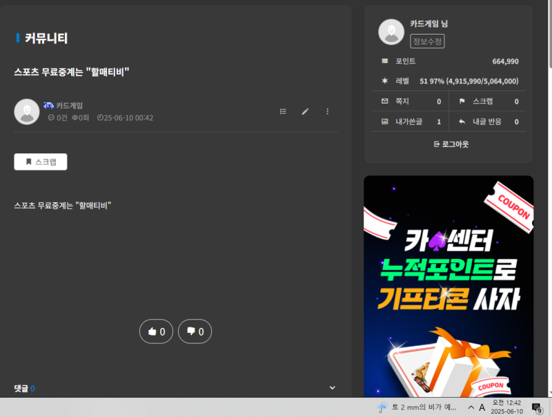 홍보왕 카드게임 6/10 작성자 정보 카드게임쪽지보내기 자기소개 닉네임으로 검색쪽지보내기 자기소개 닉네임으로 검색 작성 작성일 2025.06.10 00:43 컨텐츠 정보 58 조회 6 댓글 0 추천 목록 본문 숙완 0 추천 관련자료 이전 인생은 홍보다! 작성일 2025.06.10 00:45 다음 홍보왕 개꿀 ㅅㅅㅅㅅㅅㅅㅅㅅㅅㅅㅅㅅ 작성일 2025.06.10 00:42 댓글 6 인생은도박이다님의 댓글 인생은도박이다쪽지보내기 자기소개 닉네임으로 검색쪽지보내기 자기소개 닉네임으로 검색 작성일 2025.06.10 00:46 굿 굿 스테판커쇼님의 댓글 스테판커쇼쪽지보내기 자기소개 닉네임으로 검색쪽지보내기 자기소개 닉네임으로 검색 작성일 2025.06.10 07:24 화이팅 화이팅 켄트퍼플님의 댓글 켄트퍼플쪽지보내기 자기소개 닉네임으로 검색쪽지보내기 자기소개 닉네임으로 검색 작성일 2025.06.10 19:55 굿굿 굿굿 두두님의 댓글 두두쪽지보내기 자기소개 닉네임으로 검색쪽지보내기 자기소개 닉네임으로 검색 작성일 2025.06.10 21:33 완려 완려 마당발님의 댓글 마당발쪽지보내기 자기소개 닉네임으로 검색쪽지보내기 자기소개 닉네임으로 검색 작성일 2025.06.10 21:40 굿 굿 기커조님의 댓글 기커조쪽지보내기 자기소개 닉네임으로 검색쪽지보내기 자기소개 닉네임으로 검색 작성일 2025.06.11 00:15 홍보 ㅅ 홍보 ㅅ 로그인한 회원만 댓글 등록이 가능합니다. 목록