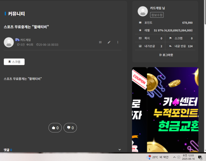 홍보왕 카드게임 6/16 작성자 정보 카드게임쪽지보내기 자기소개 닉네임으로 검색쪽지보내기 자기소개 닉네임으로 검색 작성 작성일 2025.06.16 00:04 컨텐츠 정보 53 조회 11 댓글 0 추천 목록 관리 글검색 본문 숙완 0 추천 관련자료 이전 홍보왕 카드게임 6/17 작성일 2025.06.17 03:19 다음 홍보왕 카드게임 6/15 작성일 2025.06.15 07:54 댓글 11 메인벳님의 댓글 메인벳쪽지보내기 자기소개 닉네임으로 검색쪽지보내기 자기소개 닉네임으로 검색 작성일 2025.06.16 00:04 이ㅣㄱ뭐고 이ㅣㄱ뭐고 onlysport님의 댓글 onlysport쪽지보내기 자기소개 닉네임으로 검색쪽지보내기 자기소개 닉네임으로 검색 작성일 2025.06.16 00:11 ㅅㅅ ㅅㅅ 참이슬님의 댓글 참이슬쪽지보내기 자기소개 닉네임으로 검색쪽지보내기 자기소개 닉네임으로 검색 작성일 2025.06.16 04:47 홍보 홍보 제이덥님의 댓글 제이덥쪽지보내기 자기소개 닉네임으로 검색쪽지보내기 자기소개 닉네임으로 검색 작성일 2025.06.16 13:04 홍보 홍보 마당발님의 댓글 마당발쪽지보내기 자기소개 닉네임으로 검색쪽지보내기 자기소개 닉네임으로 검색 작성일 2025.06.16 14:38 굿 굿 스테판커쇼님의 댓글 스테판커쇼쪽지보내기 자기소개 닉네임으로 검색쪽지보내기 자기소개 닉네임으로 검색 작성일 2025.06.16 15:27 화이팅 화이팅 야밀리야미님의 댓글 야밀리야미쪽지보내기 자기소개 닉네임으로 검색쪽지보내기 자기소개 닉네임으로 검색 작성일 2025.06.16 16:59 즐토요 즐토요 기커조님의 댓글 기커조쪽지보내기 자기소개 닉네임으로 검색쪽지보내기 자기소개 닉네임으로 검색 작성일 2025.06.16 18:37 홍보 ㅅ 홍보 ㅅ 먼짝귀1111님의 댓글 먼짝귀1111쪽지보내기 자기소개 닉네임으로 검색쪽지보내기 자기소개 닉네임으로 검색 작성일 2025.06.16 21:28 굿ㅅ 굿ㅅ 달먹님의 댓글 달먹쪽지보내기 자기소개 닉네임으로 검색쪽지보내기 자기소개 닉네임으로 검색 작성일 2025.06.16 22:36 화이팅 화이팅 두두님의 댓글 두두쪽지보내기 자기소개 닉네임으로 검색쪽지보내기 자기소개 닉네임으로 검색 작성일 2025.06.16 23:31 홍카 홍카 로그인한 회원만 댓글 등록이 가능합니다. 목록 관리 글검색