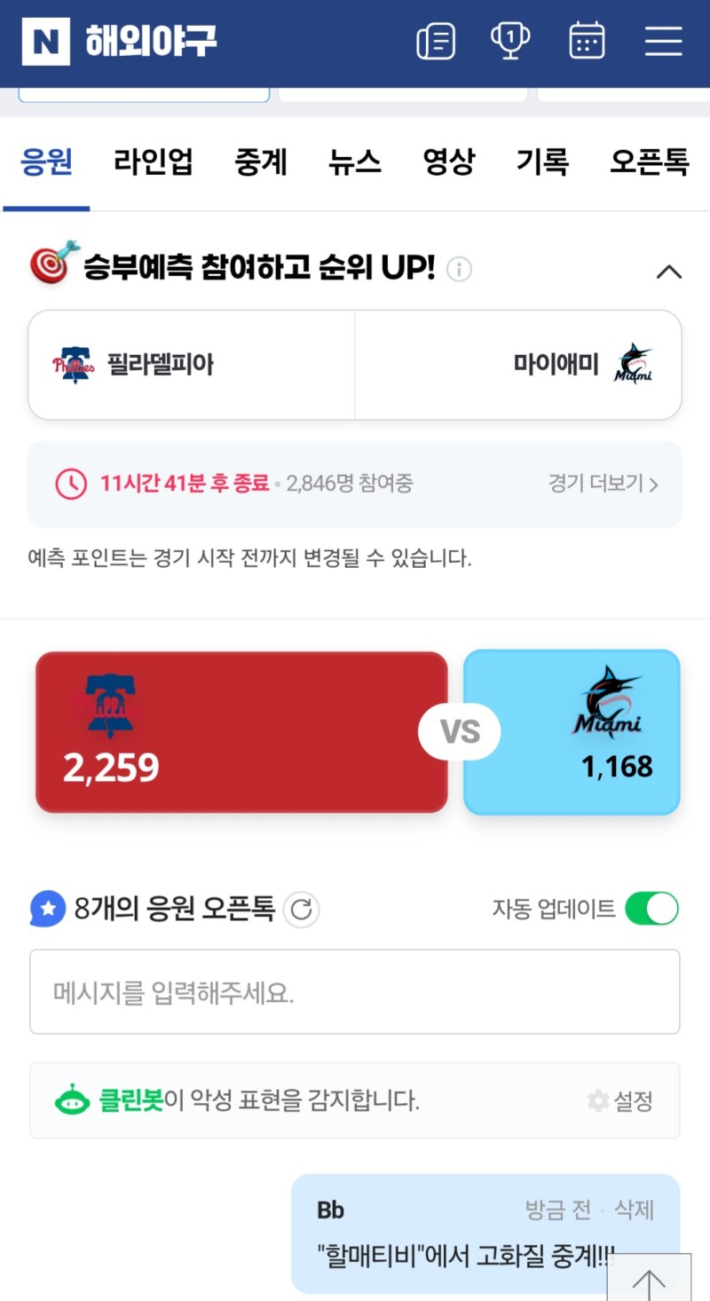 홍보왕 KBO왕 작성자 정보 KBO왕쪽지보내기 자기소개 닉네임으로 검색쪽지보내기 자기소개 닉네임으로 검색 작성 작성일 2025.06.16 20:02 컨텐츠 정보 36 조회 6 댓글 0 추천 목록 본문 선픽 화요일 하나요? 0 추천 관련자료 이전 공지만 오매불망기다리는 할창 작성일 2025.06.16 20:02 다음 이벤트 공지가 읎네 작성일 2025.06.16 19:59 댓글 6 마당발님의 댓글 마당발쪽지보내기 자기소개 닉네임으로 검색쪽지보내기 자기소개 닉네임으로 검색 작성일 2025.06.17 02:57 굿 굿 켄트퍼플님의 댓글 켄트퍼플쪽지보내기 자기소개 닉네임으로 검색쪽지보내기 자기소개 닉네임으로 검색 작성일 2025.06.17 08:25 굿굿 굿굿 달먹님의 댓글 달먹쪽지보내기 자기소개 닉네임으로 검색쪽지보내기 자기소개 닉네임으로 검색 작성일 2025.06.17 12:53 크보왕 ㅅㅅ 크보왕 ㅅㅅ 먼짝귀1111님의 댓글 먼짝귀1111쪽지보내기 자기소개 닉네임으로 검색쪽지보내기 자기소개 닉네임으로 검색 작성일 2025.06.17 16:35 굿ㅅ 굿ㅅ 기커조님의 댓글 기커조쪽지보내기 자기소개 닉네임으로 검색쪽지보내기 자기소개 닉네임으로 검색 작성일 2025.06.17 18:40 홍보 ㅅ 홍보 ㅅ 두두님의 댓글 두두쪽지보내기 자기소개 닉네임으로 검색쪽지보내기 자기소개 닉네임으로 검색 작성일 2025.06.17 19:57 홍보 홍보 로그인한 회원만 댓글 등록이 가능합니다. 목록