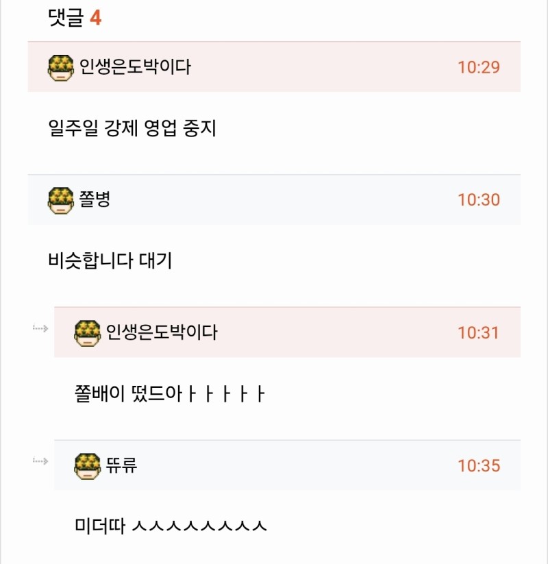 비상시국 다들 대기하라 작성자 정보 독사쪽지보내기 자기소개 닉네임으로 검색쪽지보내기 자기소개 닉네임으로 검색 작성 작성일 2025.06.17 13:49 컨텐츠 정보 44 조회 4 댓글 0 추천 목록 관리 글검색 본문 -소대장 쫄병- 0 추천 관련자료 이전 오늘 처음 보는 신입 작성일 2025.06.17 14:20 다음 그리운 토갤의 어느 현자 작성일 2025.06.17 11:48 댓글 4 인생은도박이다님의 댓글 인생은도박이다쪽지보내기 자기소개 닉네임으로 검색쪽지보내기 자기소개 닉네임으로 검색 작성일 2025.06.17 14:05 계엄이가? 후달달 계엄이가? 후달달 켄트퍼플님의 댓글 켄트퍼플쪽지보내기 자기소개 닉네임으로 검색쪽지보내기 자기소개 닉네임으로 검색 작성일 2025.06.18 01:19 오키 오키 스테판커쇼님의 댓글 스테판커쇼쪽지보내기 자기소개 닉네임으로 검색쪽지보내기 자기소개 닉네임으로 검색 작성일 2025.06.18 06:31 대기하라 대기하라 기커조님의 댓글 기커조쪽지보내기 자기소개 닉네임으로 검색쪽지보내기 자기소개 닉네임으로 검색 작성일 2025.06.18 10:47 대기 ㄷ 대기 ㄷ 로그인한 회원만 댓글 등록이 가능합니다. 목록 관리 글검색
