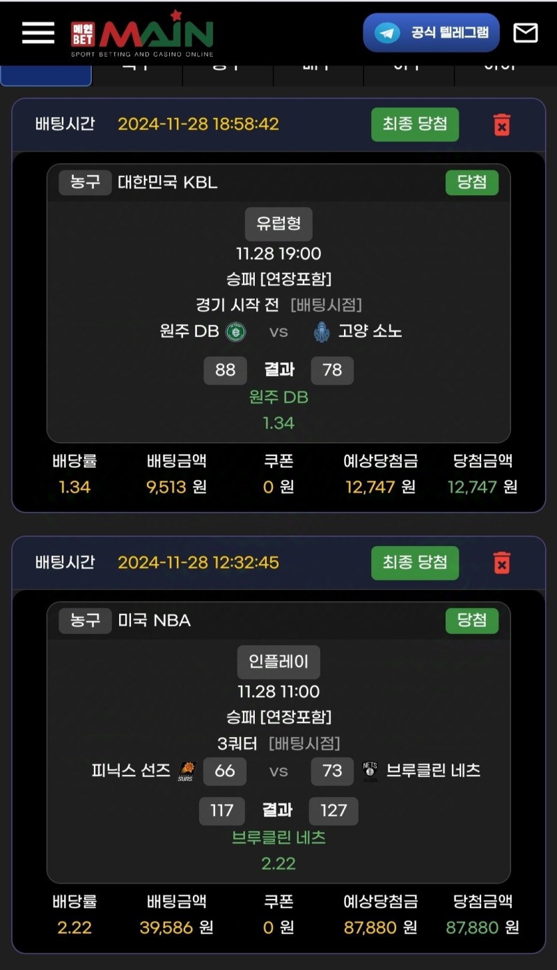 백투백경기인 피닉스가 체력적으로 불리할것이라고 생각해서 3쿼터까지 팽팽하게 흘러갈때 배당이 좋은 브루클린을 가봤습니다