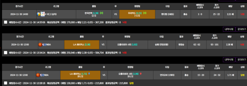오늘 처음 이용했는데 배당이 좋았던게 장점이였던거 같습니다. 레이커스 경기 1쿼터 언더 적중하고 레이커스 실시간 역배 물었는데 졌네요 + 남배까지 낙