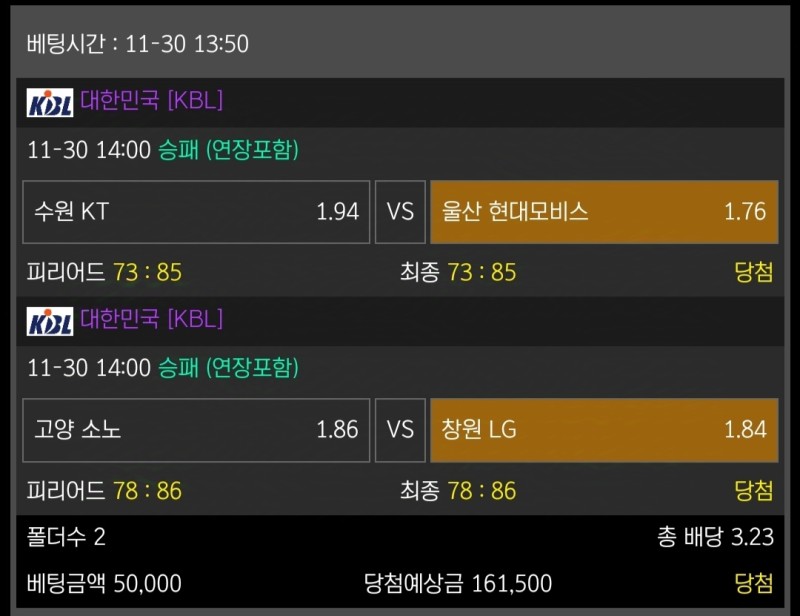 KBL 소노vs엘지, 케이티vs모비스를 배팅했는데 시종일관 엘지랑 모비스가 큰 위기 없이 리드해서 편안하게 봤습니다.