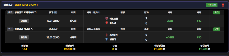 아쉬운 감정을 뒤로하고 술먹고 집에 가는 길에 에라 모르겠다 정배 두개찍었는데 적중해서 정말 다행이네요