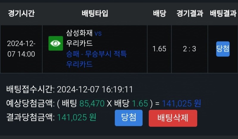 그때는 우리카드 새용병 니콜리치가 안나왔고 오늘은 나오니까 결과가 다를거라고 생각해서 우리카드 승에 배팅했습니다.
