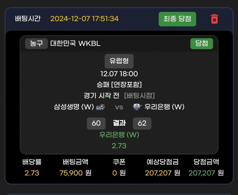 삼성이 연승중이긴 하지만 그런팀을 가장 잘잡는게 위성우의 우리은행이라고 생각해서 역배에 배팅