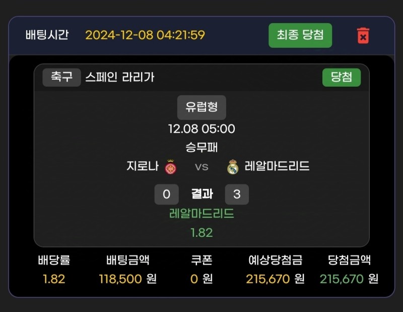 지로나는 한창 잘하던 시즌 이후로 전력유출이 계속돼서 반등이 힘들지만 레알은 언제든지 반등 가능하다고 생각해서 레알 승 배팅