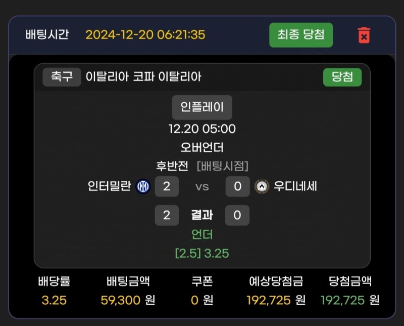 메인벳 인테르vs우디네세 후기