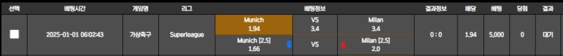 뮌헨과 밀란 경기인데 뮌헨배팅했습니다