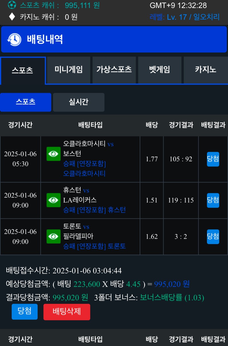 쇼미더벳) 주말 7연패 끊는 월욜벳.. 작성자 정보 일오칠쪽지보내기 자기소개 닉네임으로 검색쪽지보내기 자기소개 닉네임으로 검색 작성 작성일 2025.01.06 12:34 컨텐츠 정보 746 조회 3 댓글 0 추천 목록 관리 글검색 본문 주말동안 좀 크게잃어서 힘드네요.. 이것도 겨우 들어와서 다행이라 생각합니다 ㅜ 0 추천 관련자료 이전 레드불 후기.. ㅜㅜ 작성일 2025.01.11 01:48 다음 아보크) 새축 쓰나미 후기 ㅜㅜ 작성일 2025.01.05 23:22 댓글 3 기커조님의 댓글 기커조쪽지보내기 자기소개 닉네임으로 검색쪽지보내기 자기소개 닉네임으로 검색 작성일 2025.01.06 12:56 축하드립니다! 축하드립니다! 김배틀님의 댓글 김배틀쪽지보내기 자기소개 닉네임으로 검색쪽지보내기 자기소개 닉네임으로 검색 작성일 2025.01.06 13:52 축하드립니다! 축하드립니다! 토태님의 댓글 토태쪽지보내기 자기소개 닉네임으로 검색쪽지보내기 자기소개 닉네임으로 검색 작성일 2025.01.06 18:37 이번주 굿 스타트 축하드려여 이번주 굿 스타트 축하드려여 로그인한 회원만 댓글 등록이 가능합니다. 목록 관리 글검색