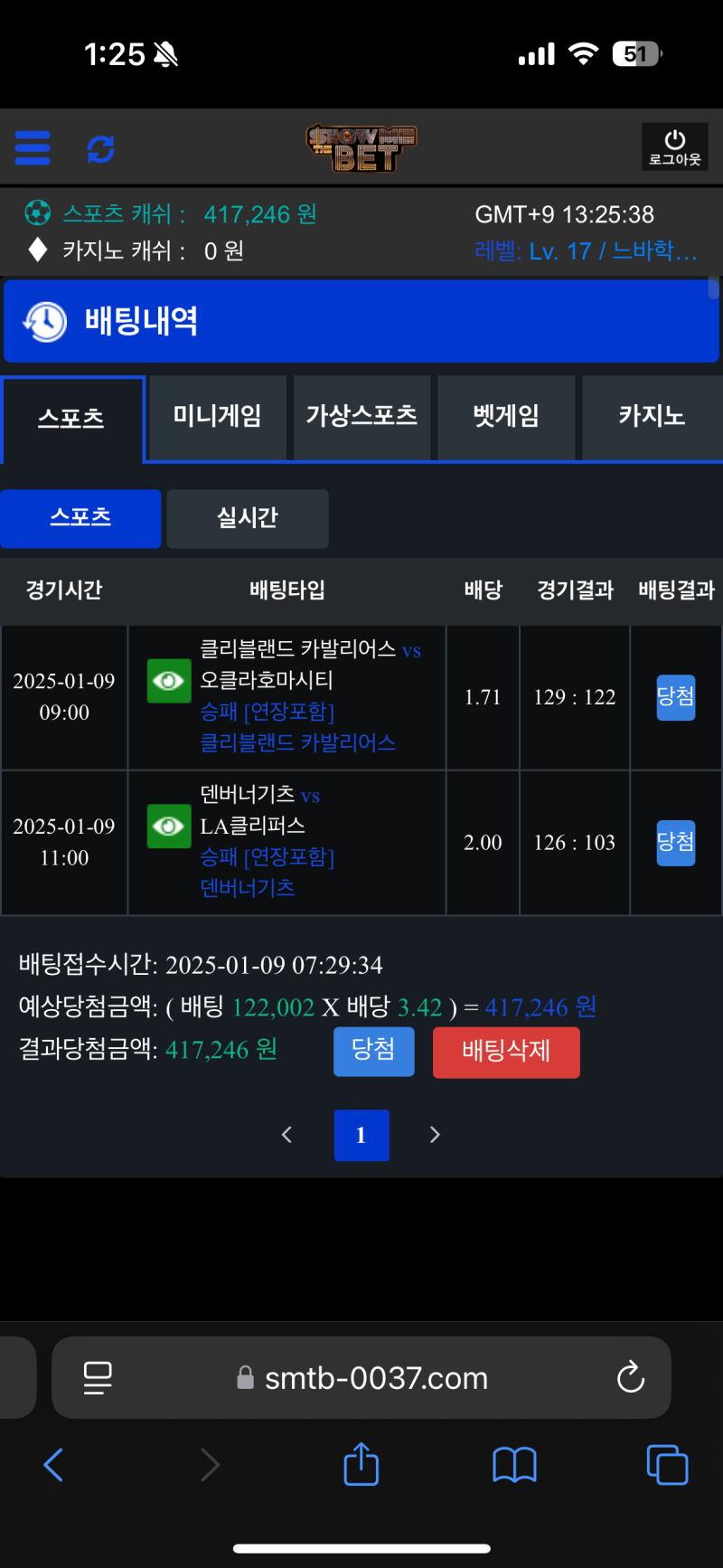 쇼미더벳 ) 스포츠후기 작성자 정보 느바학개론쪽지보내기 자기소개 닉네임으로 검색쪽지보내기 자기소개 닉네임으로 검색 작성 작성일 2025.01.09 13:30 컨텐츠 정보 715 조회 2 댓글 0 추천 목록 관리 글검색 본문 아침 택시비 이벤트 첫충 10프로 아주좋아요 클블 덴버 고맙다!!! 0 추천 관련자료 이전 래드불 ) 스포츠후기 작성일 2025.01.12 17:19 다음 풀빠따 ) 스포츠 당첨 미당첨후기 작성일 2025.01.09 13:29 댓글 2 기커조님의 댓글 기커조쪽지보내기 자기소개 닉네임으로 검색쪽지보내기 자기소개 닉네임으로 검색 작성일 2025.01.09 13:32 축하드립니다 축하드립니다 토태님의 댓글 토태쪽지보내기 자기소개 닉네임으로 검색쪽지보내기 자기소개 닉네임으로 검색 작성일 2025.01.31 22:29 축하여 축하여 로그인한 회원만 댓글 등록이 가능합니다. 목록 관리 글검색