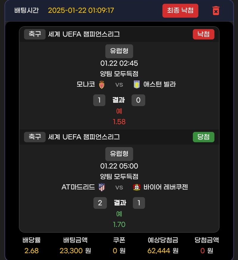 메인벳)스포츠 후기 작성자 정보 켄트퍼플쪽지보내기 자기소개 닉네임으로 검색쪽지보내기 자기소개 닉네임으로 검색 작성 작성일 2025.01.22 09:12 컨텐츠 정보 846 조회 2 댓글 0 추천 목록 관리 글검색 본문 리그전 1트 실패.. 잣같은 빌라 하... 0 추천 관련자료 이전 풀빠따)스포츠 후기 작성일 2025.01.22 15:20 다음 메인벳)스포츠 후기 작성일 2025.01.22 00:53 댓글 2 기커조님의 댓글 기커조쪽지보내기 자기소개 닉네임으로 검색쪽지보내기 자기소개 닉네임으로 검색 작성일 2025.01.22 13:02 까비요 까비요 토태님의 댓글 토태쪽지보내기 자기소개 닉네임으로 검색쪽지보내기 자기소개 닉네임으로 검색 작성일 2025.01.31 21:39 아까워요 아까워요 로그인한 회원만 댓글 등록이 가능합니다. 목록 관리 글검색