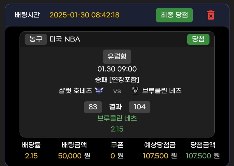 메인벳 샬럿vs브루클린 후기 작성자 정보 마당발쪽지보내기 자기소개 닉네임으로 검색쪽지보내기 자기소개 닉네임으로 검색 작성 작성일 2025.01.30 16:13 컨텐츠 정보 871 조회 2 댓글 0 추천 목록 관리 글검색 본문 라멜로 볼과 마크 윌리엄스가 빠지는 샬럿인데 왜 브루클린이 역배인지 모르겠어서 배팅 경기내내 10점차 이상 리드하며 넉넉하게 승리 0 추천 관련자료 이전 쇼미더벳 트벤테vs베식타스 후기 작성일 2025.01.31 18:46 다음 쇼미더벳 보스턴vs시카고 후기 작성일 2025.01.30 16:12 댓글 2 기커조님의 댓글 기커조쪽지보내기 자기소개 닉네임으로 검색쪽지보내기 자기소개 닉네임으로 검색 작성일 2025.01.30 16:43 축하드립니다 축하드립니다 인생은도박이다님의 댓글 인생은도박이다쪽지보내기 자기소개 닉네임으로 검색쪽지보내기 자기소개 닉네임으로 검색 작성일 2025.01.30 19:53 샤샤샷 샤샤샷 로그인한 회원만 댓글 등록이 가능합니다. 목록 관리 글검색