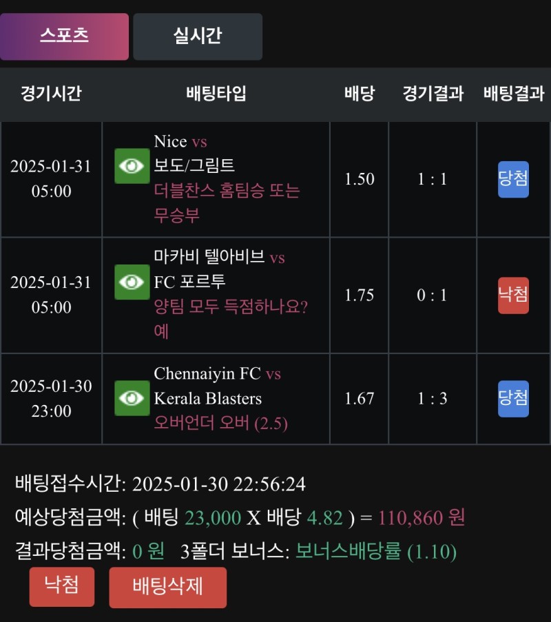 돌직구 낙첨