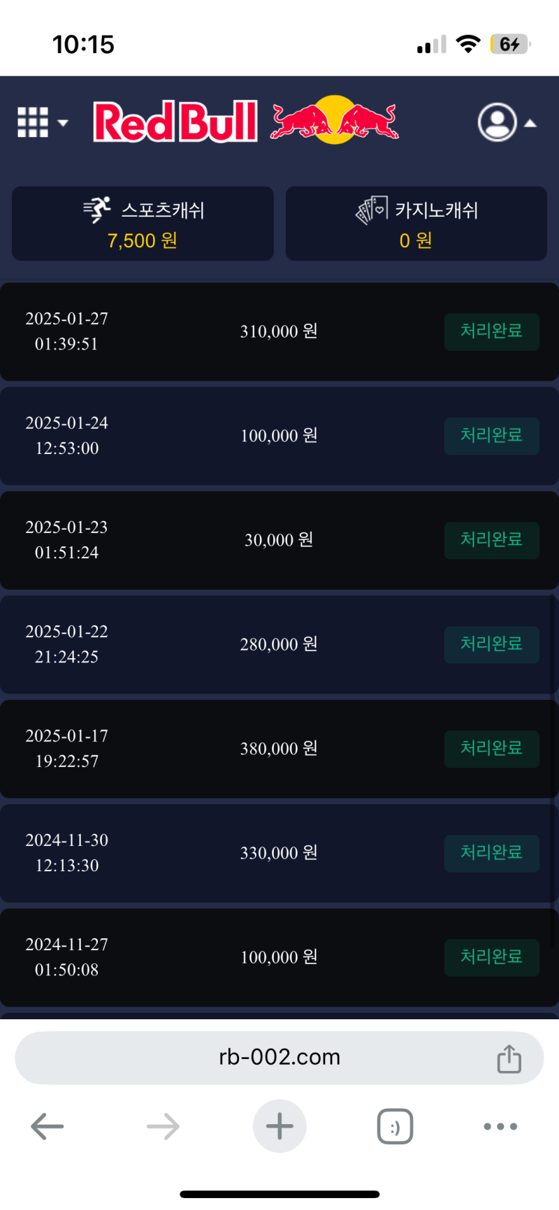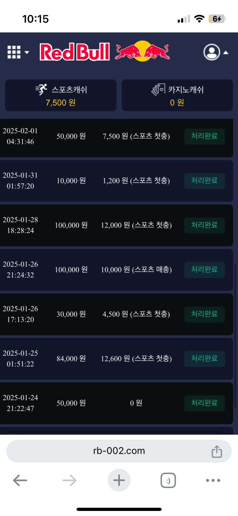 첫 충 15프로를 레드불에서 받으며 설레는 마음으로 배팅했지만 아쉽습니다.