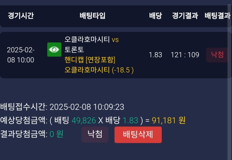 레드불 오클라호마vs토론토 후기 작성자 정보 마당발쪽지보내기 자기소개 닉네임으로 검색쪽지보내기 자기소개 닉네임으로 검색 작성 작성일 2025.02.08 19:58 컨텐츠 정보 927 조회 1 댓글 0 추천 목록 관리 글검색 본문 토론토 개못해서 18.5마핸 충분히 할 줄 알고 갔는데 막판 불을뿜는 스찌 3점파티로 낙첨 0 추천 관련자료 이전 풀빠따 밀워키vs애틀랜타 후기 작성일 2025.02.08 19:59 다음 레드불 덴버vs올랜도 후기 작성일 2025.02.07 21:40 댓글 1 기커조님의 댓글 기커조쪽지보내기 자기소개 닉네임으로 검색쪽지보내기 자기소개 닉네임으로 검색 작성일 2025.02.08 20:39 까비입니다 까비입니다 로그인한 회원만 댓글 등록이 가능합니다. 목록 관리 글검색