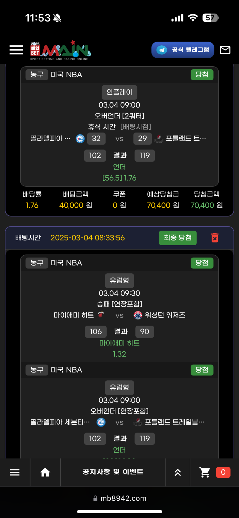 메인벳 ) 선픽 스포츠후기 작성자 정보 느바학개론쪽지보내기 자기소개 닉네임으로 검색쪽지보내기 자기소개 닉네임으로 검색 작성 작성일 2025.03.04 11:54 컨텐츠 정보 913 조회 2 댓글 0 추천 목록 관리 글검색 본문 3승마무리 0 추천 관련자료 이전 풀빠다 ) 스포츠후기 작성일 2025.03.05 11:29 다음 쇼미더벳 ) 한폴낙 스포츠후기 작성일 2025.03.03 13:53 댓글 2 마당발님의 댓글 마당발쪽지보내기 자기소개 닉네임으로 검색쪽지보내기 자기소개 닉네임으로 검색 작성일 2025.03.04 12:24 축하드립니다 축하드립니다 기커조님의 댓글 기커조쪽지보내기 자기소개 닉네임으로 검색쪽지보내기 자기소개 닉네임으로 검색 작성일 2025.03.04 18:50 당첨축하요 당첨축하요 로그인한 회원만 댓글 등록이 가능합니다. 목록 관리 글검색