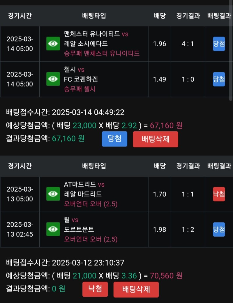 풀빠따 스포츠 당첨후기!!!!! 작성자 정보 스트렌저쪽지보내기 자기소개 닉네임으로 검색쪽지보내기 자기소개 닉네임으로 검색 작성 작성일 2025.03.14 07:50 컨텐츠 정보 972 조회 3 댓글 0 추천 목록 관리 글검색 본문 역배 잘뜨는 유로파가 올정배라니!! 배당대비 너무좋네요!!샷 0 추천 관련자료 이전 멤피스 스포츠 후기 낙첨 작성일 2025.05.18 07:08 다음 풀빠따 스포츠 후기 작성일 2025.02.14 15:00 댓글 3 믈브1234님의 댓글 믈브1234쪽지보내기 자기소개 닉네임으로 검색쪽지보내기 자기소개 닉네임으로 검색 작성일 2025.03.14 08:45 ㅊㅊ ㅊㅊ 마당발님의 댓글 마당발쪽지보내기 자기소개 닉네임으로 검색쪽지보내기 자기소개 닉네임으로 검색 작성일 2025.03.14 16:35 ㅊㅋㅊㅋ ㅊㅋㅊㅋ 기커조님의 댓글 기커조쪽지보내기 자기소개 닉네임으로 검색쪽지보내기 자기소개 닉네임으로 검색 작성일 2025.03.14 18:42 축하합니다 축하합니다 로그인한 회원만 댓글 등록이 가능합니다. 목록 관리 글검색
