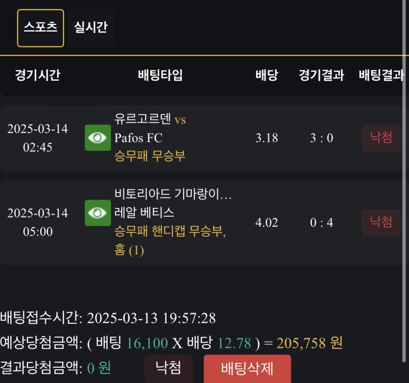 유로고르덴 홈에서는 역시 강하네요 1대0아니면 무승부 봤는데 3대0이 나올줄 몰랐네요 어렵네요 베티스는 이길건 알았는데 학살 나올줄은 몰랐네요 돌직구 돌발 5프로추가 입금 받고 했는데 낙 아쉽네용