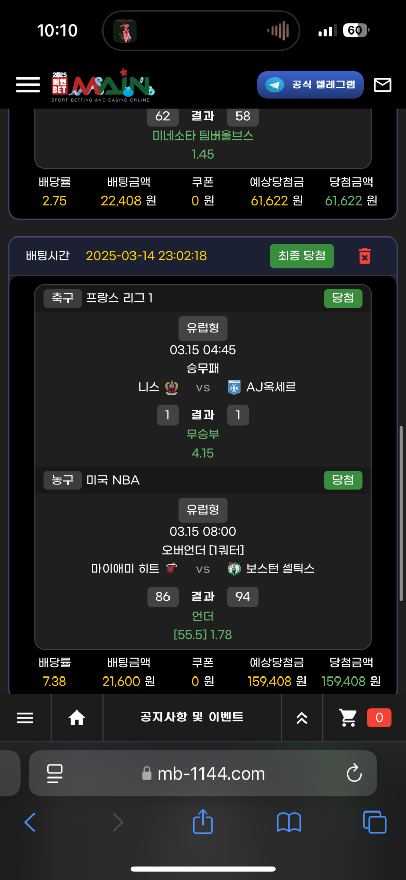 메인벳 ) 스포츠후기 작성자 정보 느바학개론쪽지보내기 자기소개 닉네임으로 검색쪽지보내기 자기소개 닉네임으로 검색 작성 작성일 2025.03.15 10:11 컨텐츠 정보 943 조회 2 댓글 0 추천 목록 관리 글검색 본문 니스 무승부로 토드컵 픽했어야하는데 ㄲㅂ 0 추천 관련자료 이전 메인벳 ) 느바 올낙첨후기 작성일 2025.03.15 11:41 다음 레드불 ) 낙첨후기 작성일 2025.03.15 09:01 댓글 2 기커조님의 댓글 기커조쪽지보내기 자기소개 닉네임으로 검색쪽지보내기 자기소개 닉네임으로 검색 작성일 2025.03.15 12:42 당첨축하요 당첨축하요 마당발님의 댓글 마당발쪽지보내기 자기소개 닉네임으로 검색쪽지보내기 자기소개 닉네임으로 검색 작성일 2025.03.15 19:26 ㅊㅋㅊㅋ ㅊㅋㅊㅋ 로그인한 회원만 댓글 등록이 가능합니다. 목록 관리 글검색