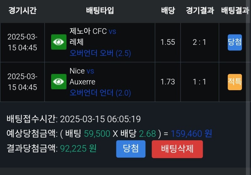 쇼미더벳 제노아vs레체 후기 작성자 정보 마당발쪽지보내기 자기소개 닉네임으로 검색쪽지보내기 자기소개 닉네임으로 검색 작성 작성일 2025.03.15 21:51 컨텐츠 정보 902 조회 2 댓글 0 추천 목록 관리 글검색 본문 제노아vs레체 개언더 게임이라고 생각했는데 전반에 제노아가 두골 넣어서 실시간으로 오버 베팅 후반에 겨우겨우 레체가 pk골 넣어서 겨우 적중 0 추천 관련자료 이전 레드불 애틀란타vs클리퍼스 후기 작성일 2025.03.15 21:53 다음 쇼미더벳 골스vs새크 후기 작성일 2025.03.14 16:03 댓글 2 기커조님의 댓글 기커조쪽지보내기 자기소개 닉네임으로 검색쪽지보내기 자기소개 닉네임으로 검색 작성일 2025.03.15 21:57 축하합니다 축하합니다 인생은도박이다님의 댓글 인생은도박이다쪽지보내기 자기소개 닉네임으로 검색쪽지보내기 자기소개 닉네임으로 검색 작성일 2025.03.15 23:42 나이따 ㅅㅅㅅ 나이따 ㅅㅅㅅ 로그인한 회원만 댓글 등록이 가능합니다. 목록 관리 글검색