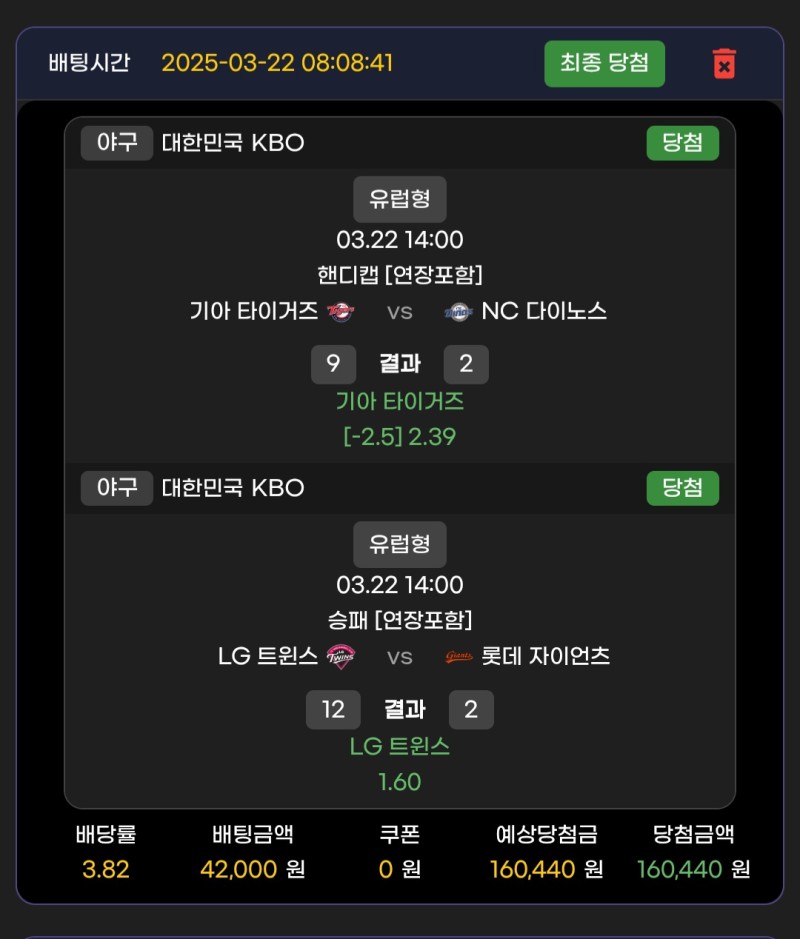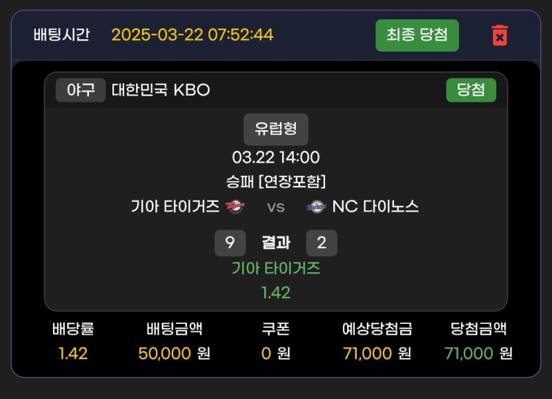 메인벳 국야후기 작성자 정보 Limez쪽지보내기 자기소개 닉네임으로 검색쪽지보내기 자기소개 닉네임으로 검색 작성 작성일 2025.03.22 17:36 컨텐츠 정보 921 조회 1 댓글 0 추천 목록 관리 글검색 본문 로건투수가 호투+김도영 아웃이라 불안했는데 8회에 불빠따가.. 승리의 기마옵 ㅅㅅㅅㅅ 0 추천 관련자료 이전 메인벳 스포츠 후기 작성일 2025.03.30 19:36 다음 메인벳 후기 작성일 2025.03.16 18:39 댓글 1 기커조님의 댓글 기커조쪽지보내기 자기소개 닉네임으로 검색쪽지보내기 자기소개 닉네임으로 검색 작성일 2025.03.23 12:51 당첨축하요 당첨축하요 로그인한 회원만 댓글 등록이 가능합니다. 목록 관리 글검색