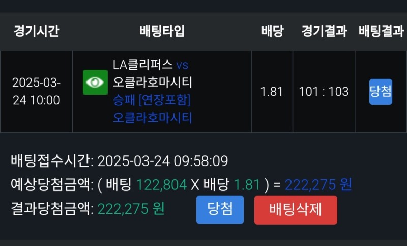 쇼미더벳 클리퍼스vs오클라호마 후기